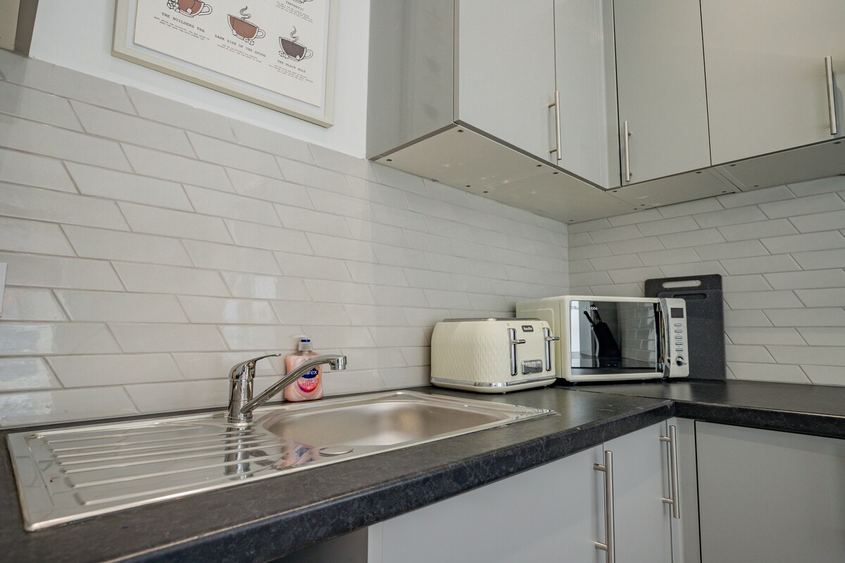 As you walk into the flat, you are greeted by a cosy living area. The kitchen is just off the living room and is fully equipped for cooking with access to utensils and suitable pots and pans. Additionally, the property has: a fridge/freezer, a microwave, kettle and a toaster.