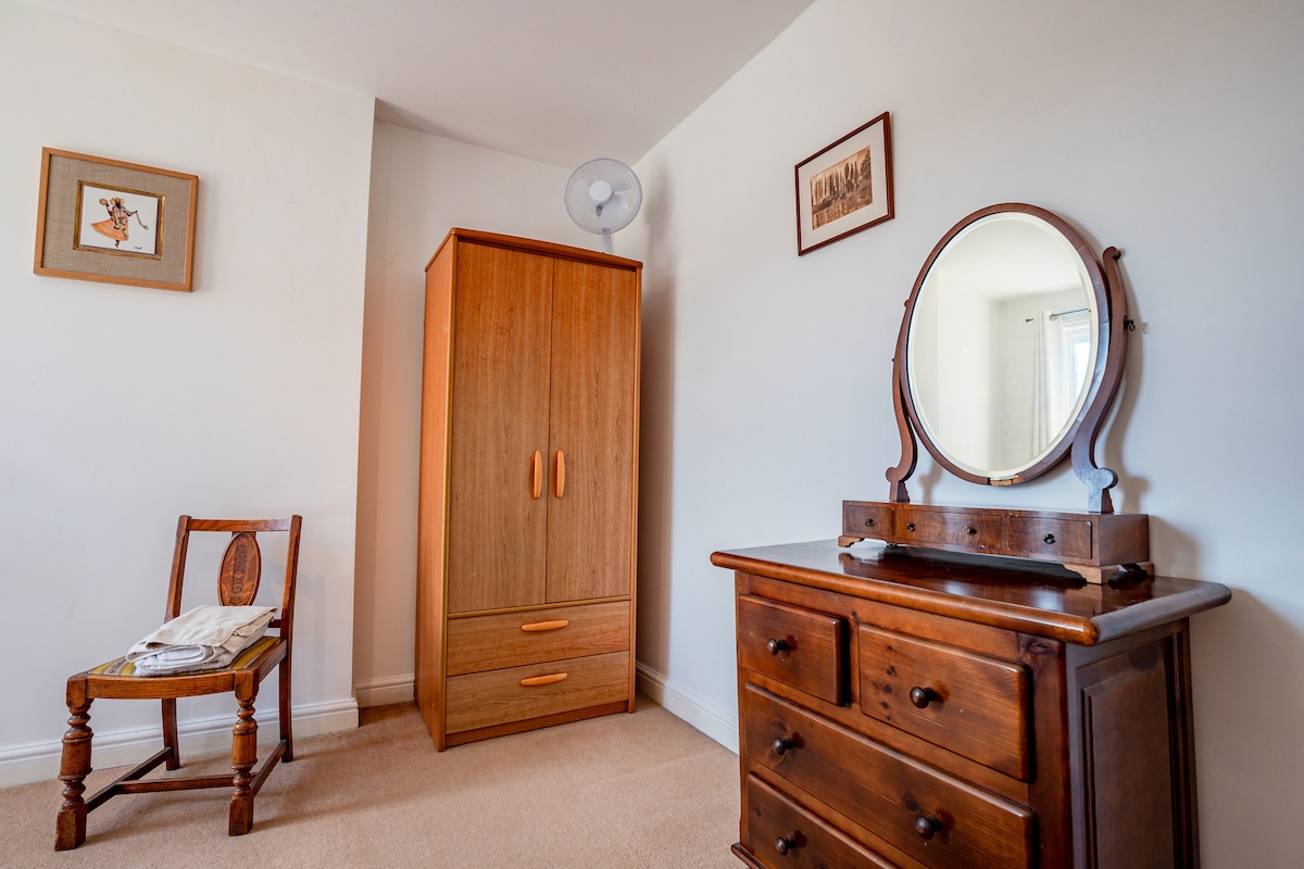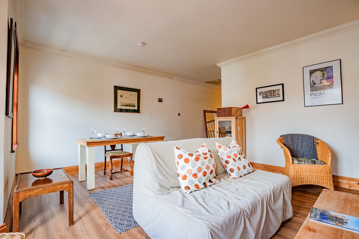 This property is located on the first floor, with convenient access via a nearby car park, although there is no designated parking. It features a spacious double bedroom with plenty of storage, including a wardrobe and dressing table. The large bathroom offers both a bath with an overhead shower, sink, and WC. The open-plan kitchen and dining area is fully equipped for 2 guests, with the added convenience of a washing machine. A separate, larger dining area is located in the living room, which also boasts a cosy lounge area with a sofa bed, TV, and reading materials for relaxation.Guest access