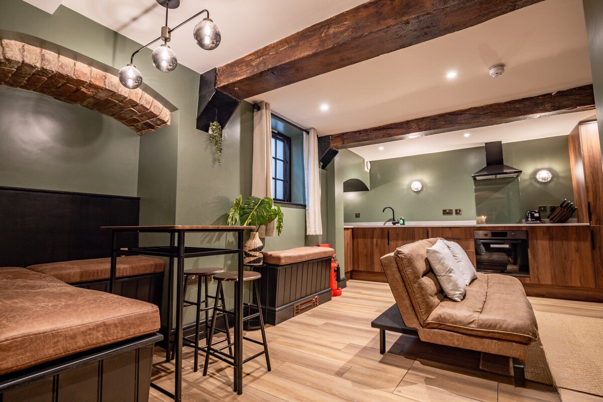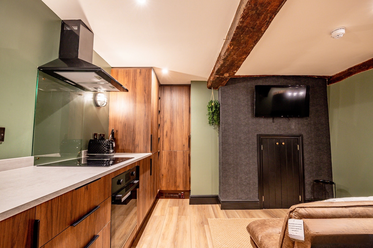 This apartment is located in the basement of the building and is accessible via stairs. There is no dedicated parking for the apartment, but we recommend using Crown Gate Car Park (Moreton Pl, Worcester WR1 3LZ), which is just a 3-minute walk away. Alternatively, there is on-road parking in a 45-minute bay, which is free between 6pm and 9am.The fully equipped kitchen includes all the essentials for cooking, such as utensils, pots and pans, a hob, oven, microwave, kettle, and toaster.