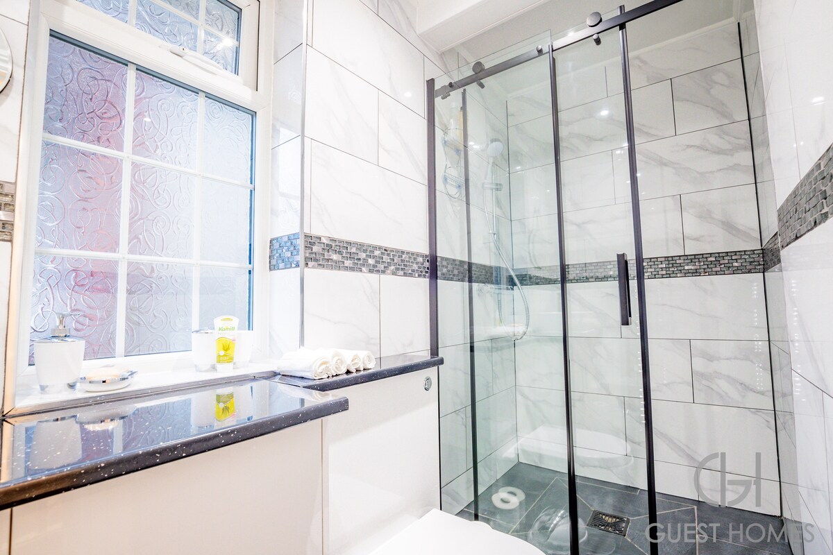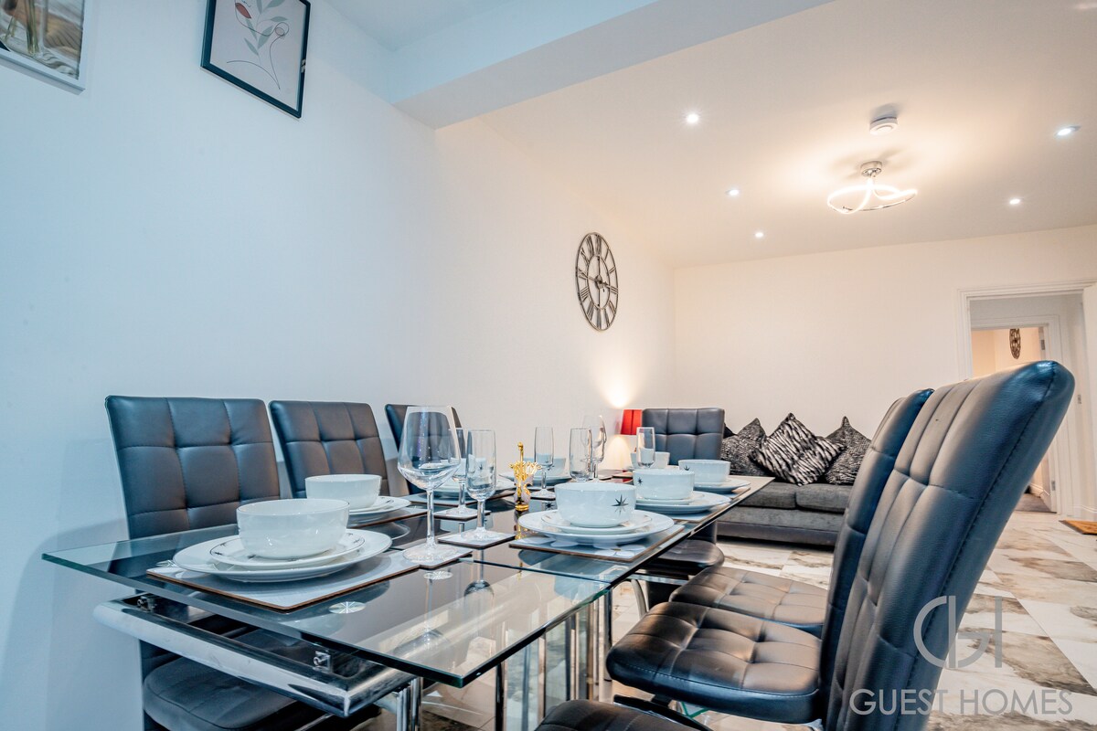 Broadland House offers a comfortable and spacious stay with all the amenities you need for a relaxing getaway. The property provides 3-hour free parking outside, with additional free parking available on the street nearby. Inside, the fully equipped kitchen is perfect for preparing meals, featuring an oven, hob, fridge/freezer, microwave, toaster, and washing machine. Complementary coffee, tea, and sugar are provided, and there's a dining table with seating for 8, along with a breakfast bar for casual dining. The cosy lounge area has two vibrant sofas, ideal for unwinding while enjoying your favourite shows on the TV. The property boasts three double bedrooms and a sofa bed, providing plenty of space for guests. Two spacious bathrooms, each with a shower, toilet, and sink, are available, and fresh towels are provided for your convenience.Guest access