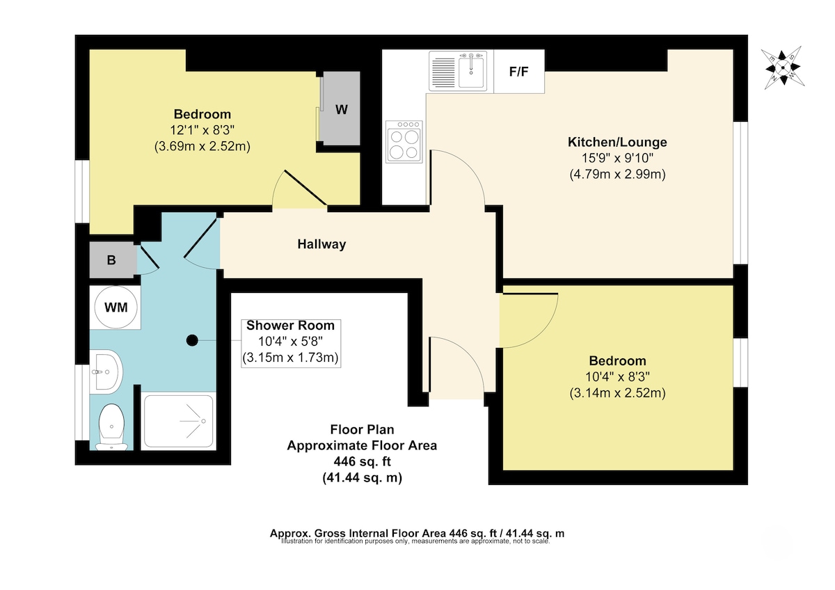 There are two bedrooms here. The first is on the right hand side as you enter the property and is a twin. There is a hanging space and drawers for storage. Further through the hallway, the second bedroom is a double with wardrobe space.