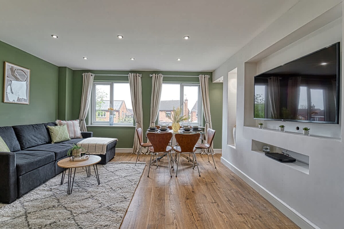 The spacious living area is the highlight of this lovely property. Settle down for the evening and watch a Netflix film on the large Smart TV. There is space to relax on the sofa or even play a game at the dining table!