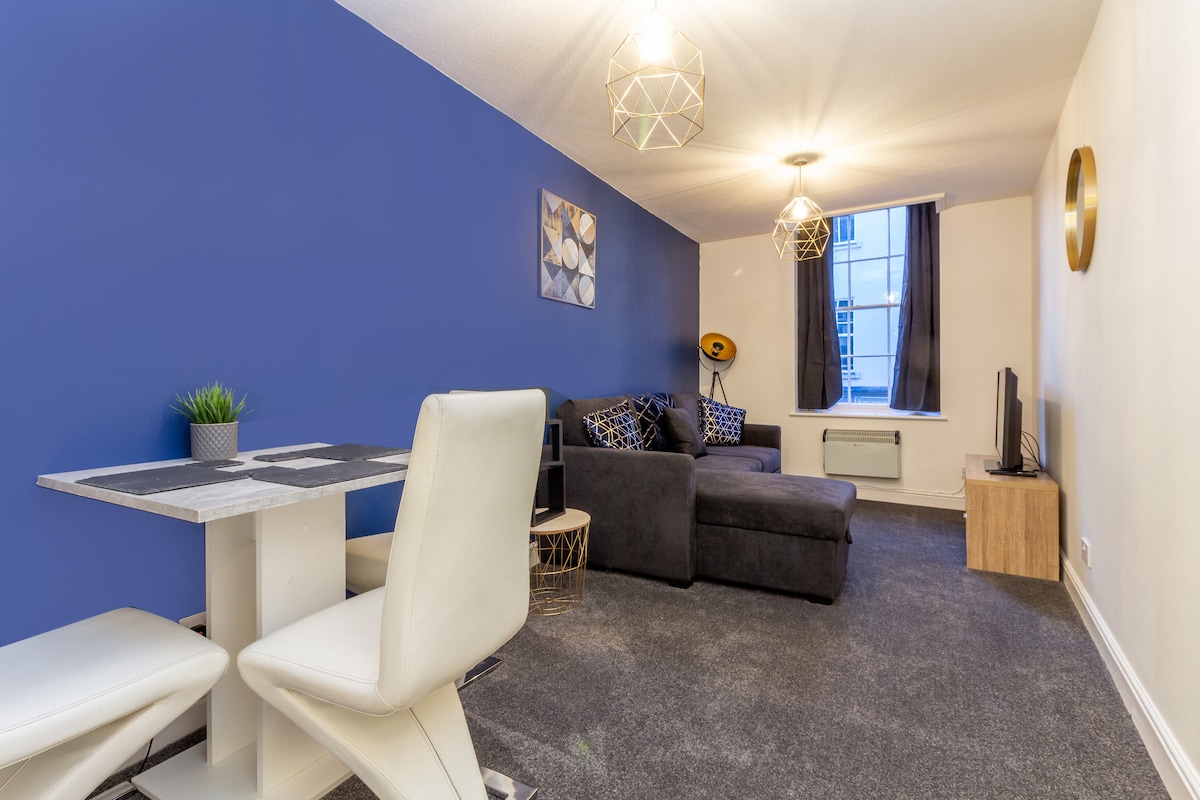 New Street Suite is a spacious 1-bedroom apartment located in the heart of Worcester city centre, offering an unbeatable location with everything you need right at your doorstep. The apartment features an open-plan living room, dining area, and kitchen, creating a seamless space for relaxation and entertaining. With its warm and inviting atmosphere, New Street provides the perfect home away from home, whether you're exploring the city or simply unwinding after a day of activities.