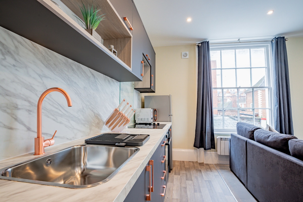 Accessed by a single flight of stairs, the apartment features an open-plan living space, one bedroom, a storage cupboard, and a bathroom. Although there is no on-site parking, the nearby Crown Gate Car Park, just a 3-minute walk away, provides ample parking options.The fully equipped kitchen is perfect for a self-catered stay, with all the necessary appliances, including a fridge freezer, oven/hob, microwave, kettle, toaster, and a range of utensils, pots, and pans.