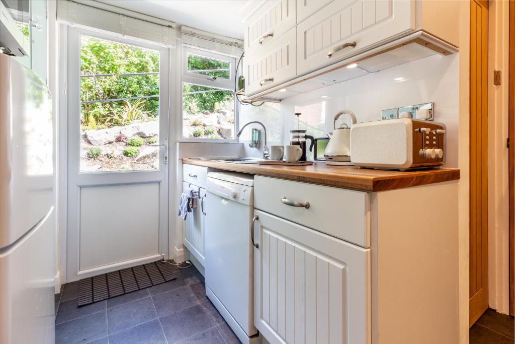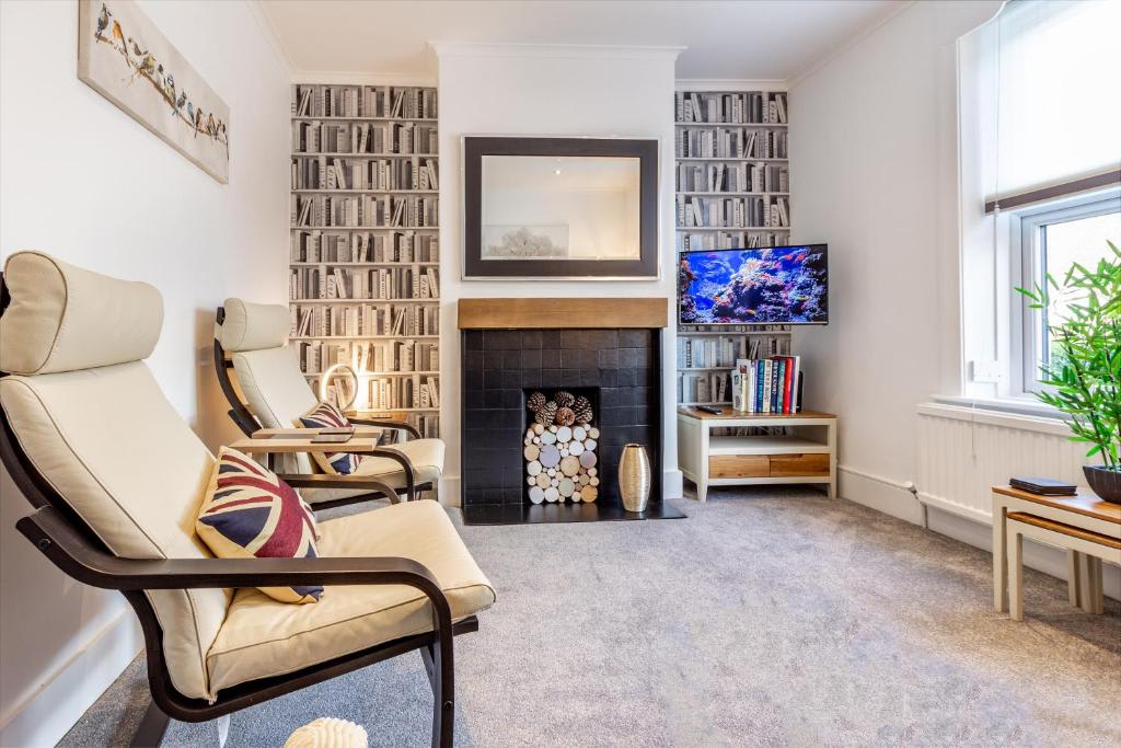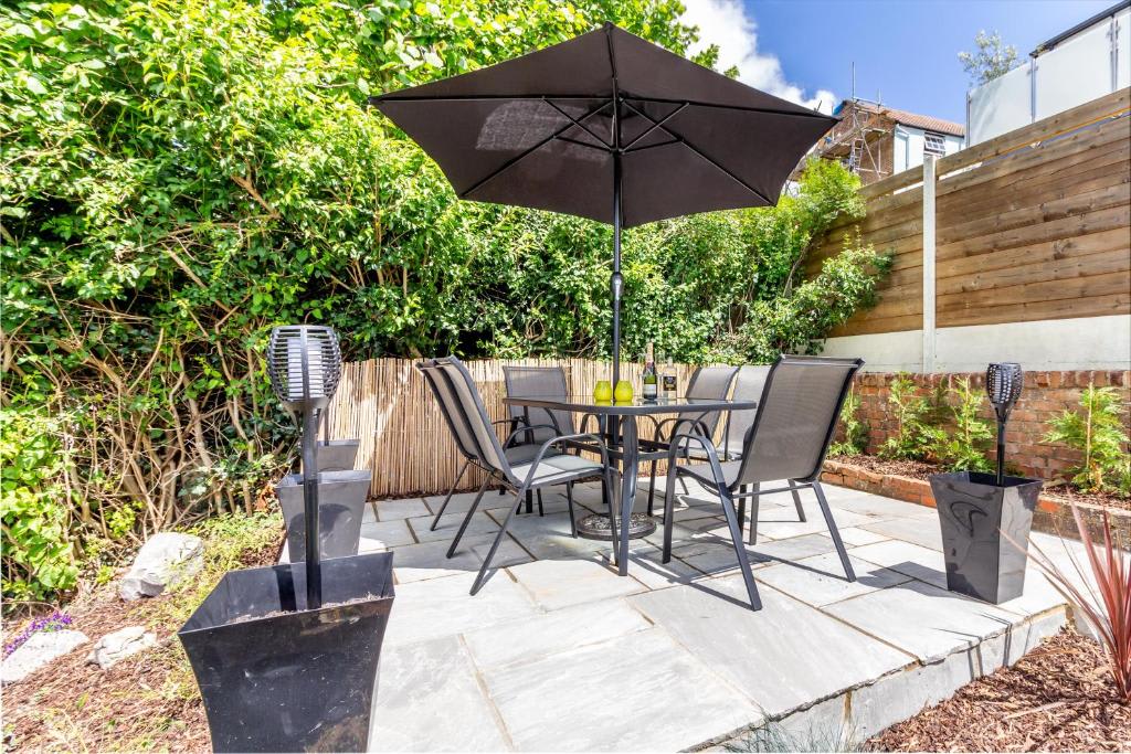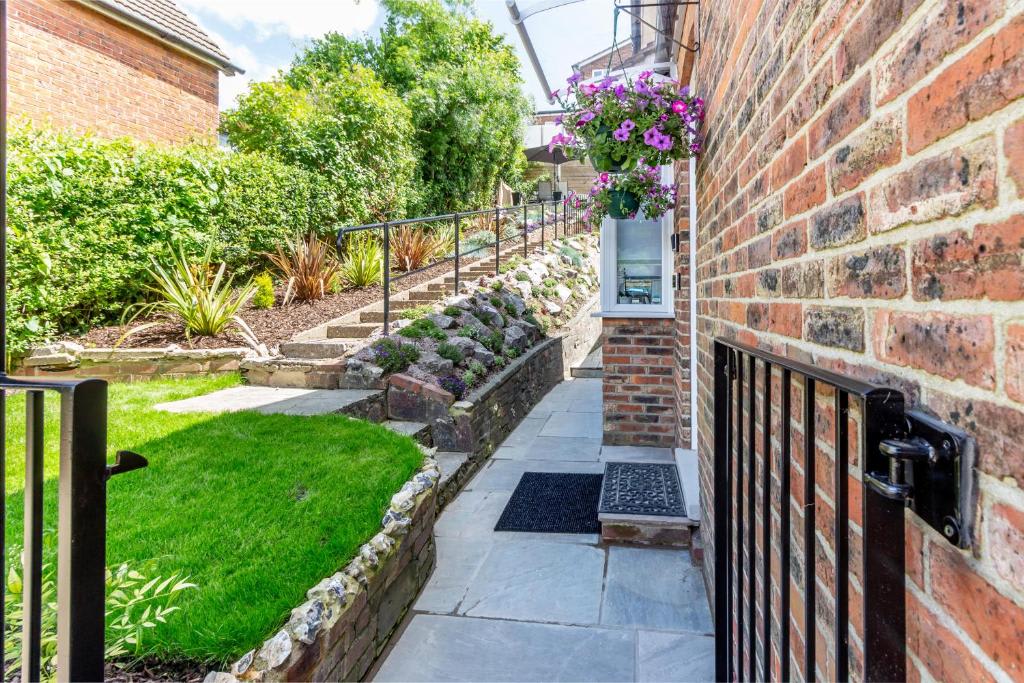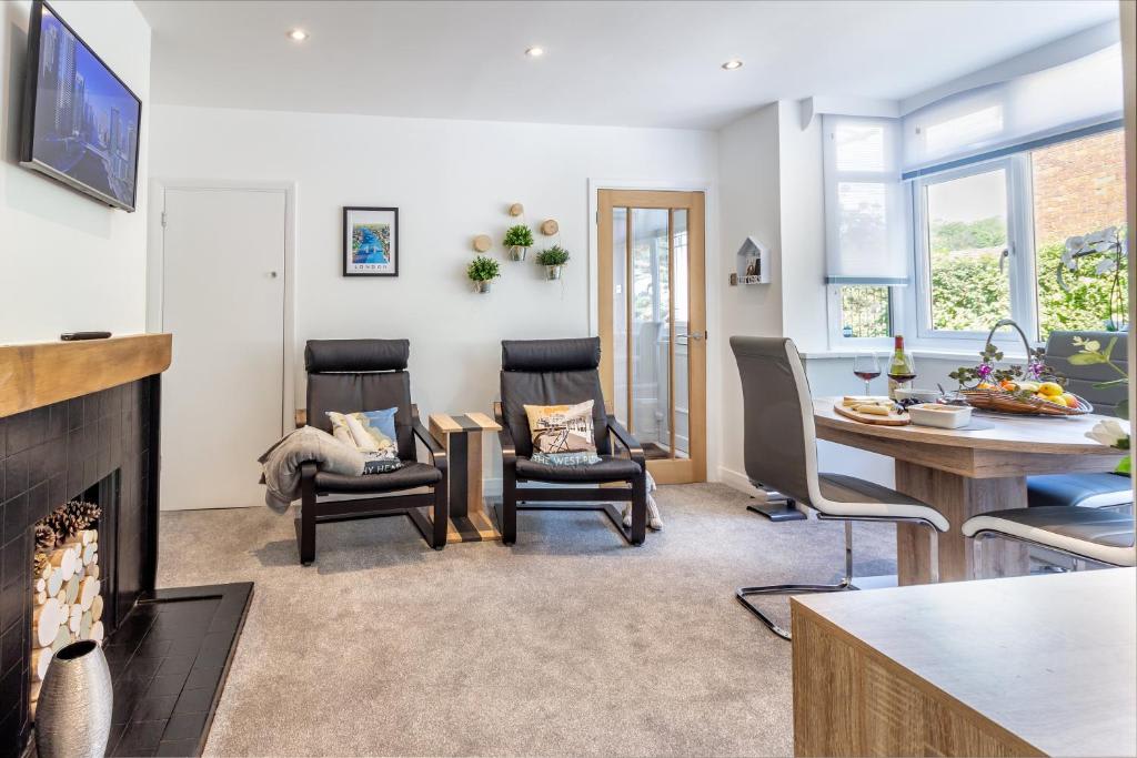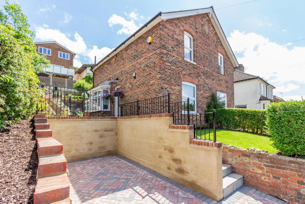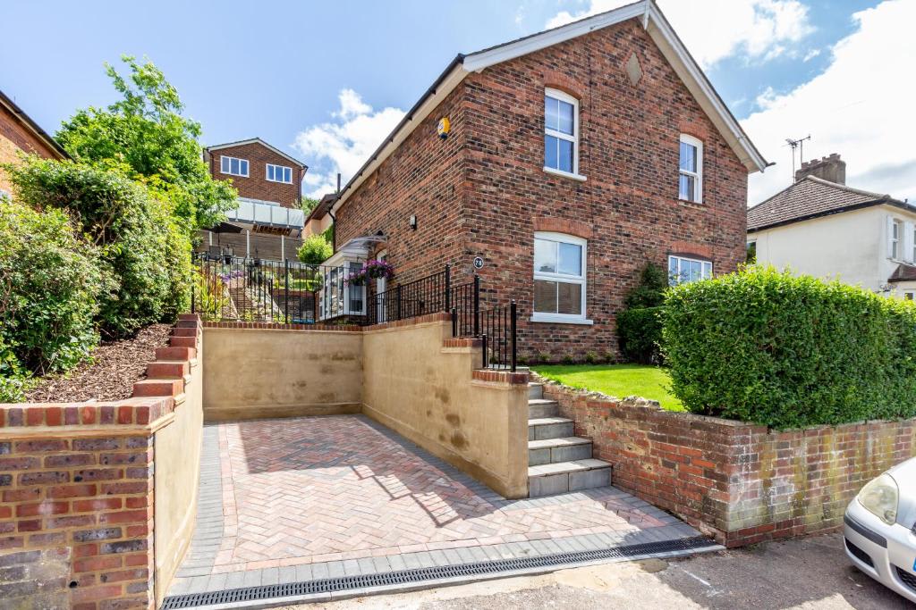 Farningham Residence offers a beautifully sloped garden with a traditional English rockery, a terrace with stunning valley views, and an outdoor dining area with a parasol and BBQ for al fresco dining. Parking is available for one car on the driveway. Inside, enjoy super-fast fibre optic Virgin broadband with unlimited downloads. The spacious living room features a sofa bed, two relaxing chairs, and a 4K Smart HDTV. The open-plan dining room, with an extendable round table, is perfect for family meals and conversations, and also has a 4K flat screen TV. The fully equipped kitchen includes an induction hob, electric oven, dishwasher, microwave, and hob extractor fan. There's a separate laundry area with a washing machine and tumble dryer. The bathroom has a bath with a rainfall shower. Upstairs, the master bedroom boasts a super king bed (convertible to singles upon request), 4K Smart HDTV, mirrored wardrobe, and en-suite WC. The second bedroom also features a super king bed (convertible to singles), a 4K Smart HDTV, and ample storage. Please note, the stairs are quite steep.Guest access