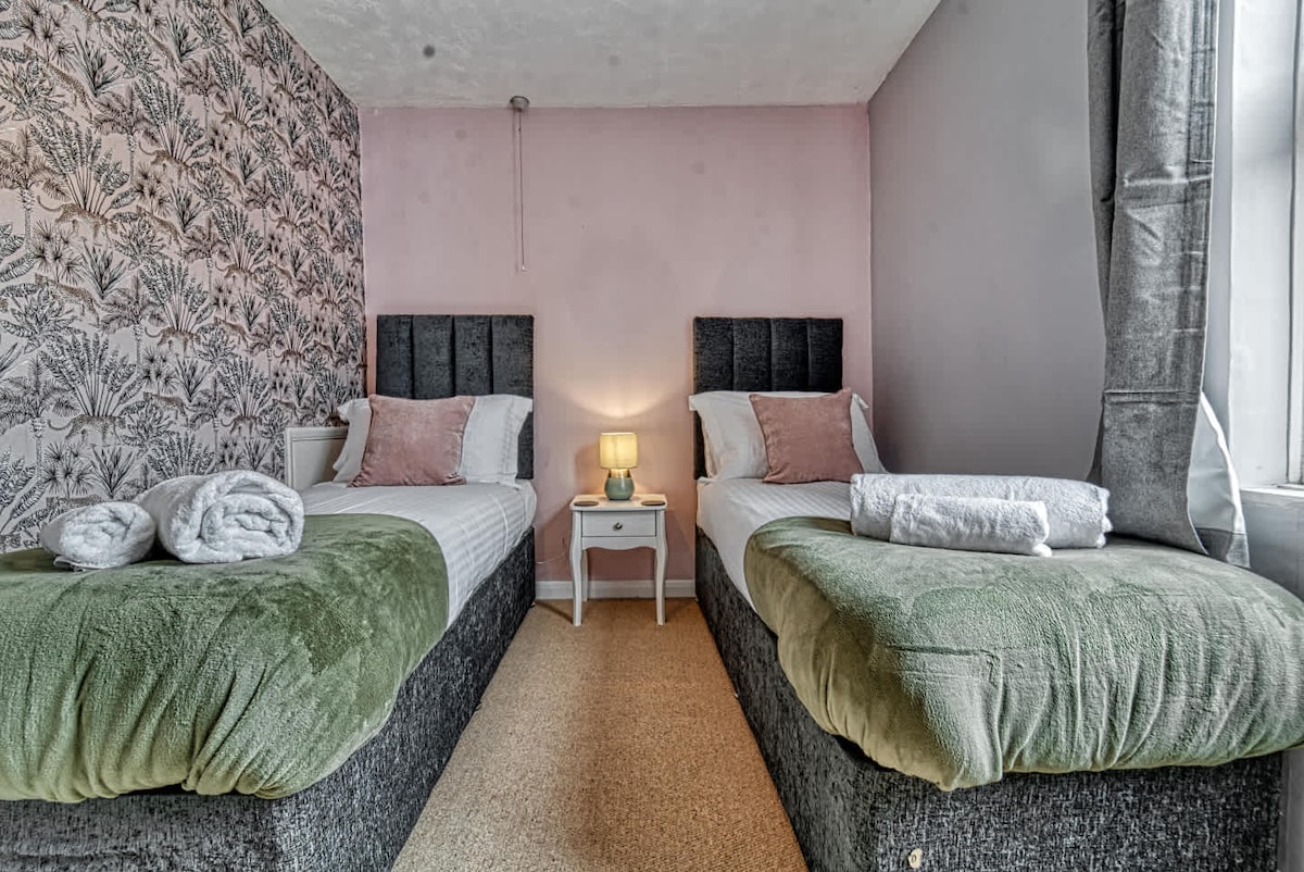 Stayed here for a family funeral - 5 adults. Great location and quiet. It is like staying in a student house - which is ok- but a few things would improve it. Main bedroom and bathroom is good - clean and comfortable. Great to have fans in all bedrooms. Towels and bedding all clean and new. Single beds - need new mattresses - v uncomfortable. Top room mattress is ok. Downstairs bathroom just needs some mould cleaner and a good scrub on the tiles. All downstairs could do with a lick of paint. Coffee plunger would be good as could not make a fresh coffee. Would stay again if needed for a family do as know what to expect now. Did have to hoover up an outbreak of wood lice in the front room because of the warm weather - maybe needs looking at.