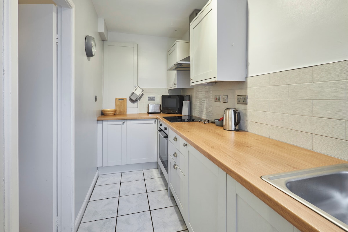 Location is perfect, right off the Main Street of Alnwick with most amenities in walking distance. Good variety of bars and restaurants nearby. The flat itself is cosy, warm, clean and tidy with everything you need. The bathroom was a little tired but everything else new and modern. Overall it is a perfect bolt hole in Alnwick with 1 private parking space (however easy to get parking nearby). Just a couple of points I feel could be improved upon - only 2 towels and for a weeks stay we could have used a few more and only 1 roll of toilet roll for a week also. It is a flat so you can at times hear upstairs neighbour but it wasn’t an issue.