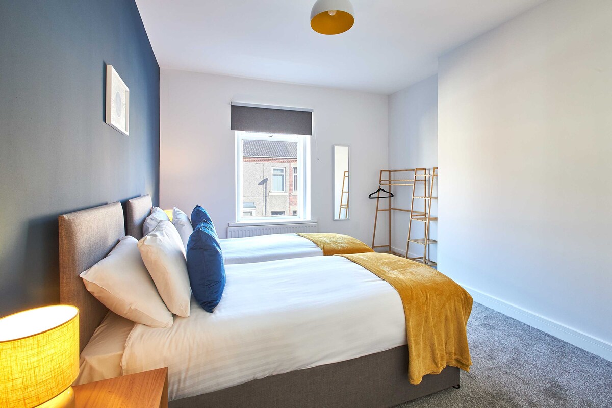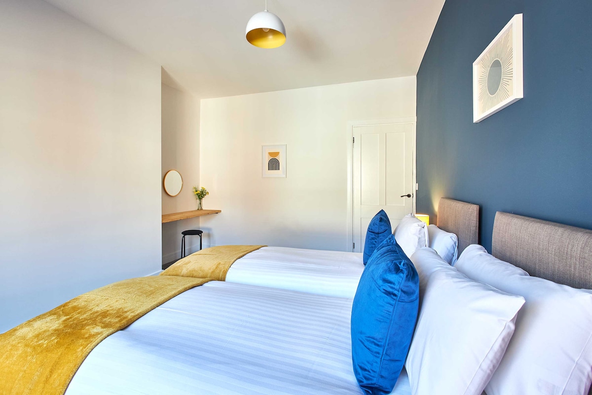 The first bedroom features a double bed, while the second bedroom includes a small double. The final bedroom includes comfortable twin single beds which can also be merged into a king upon request if this is more suitable for your stay. All three bedrooms have a tranquil feel and premium bed linens to ensure a comfortable night's sleep.