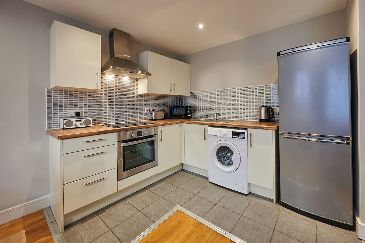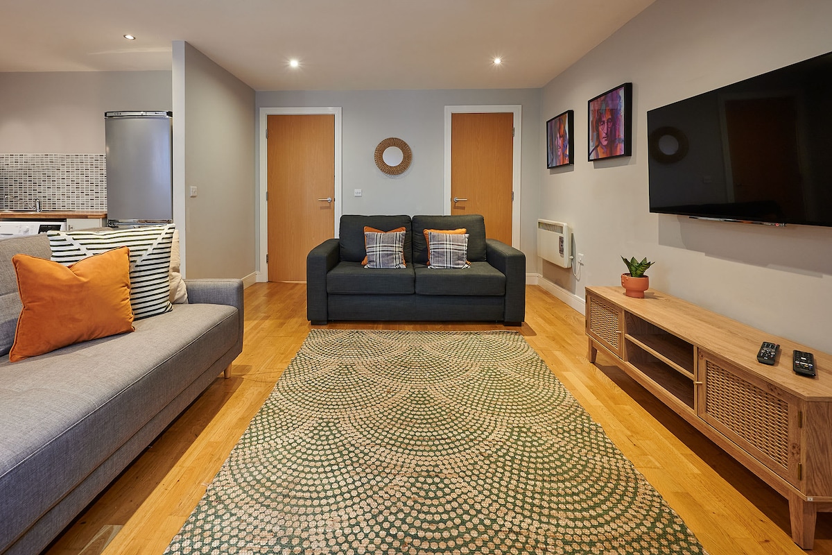 The apartment has 2 large double bedrooms and a spacious living area which boasts a super comfy double sofa bed! There is also a fully fitted kitchen equipped with all the modern appliances needed to whip up some delicious home meals! A clean family bathroom completes the apartment.The apartment comes complete with super fast HyperOptic broadband!
