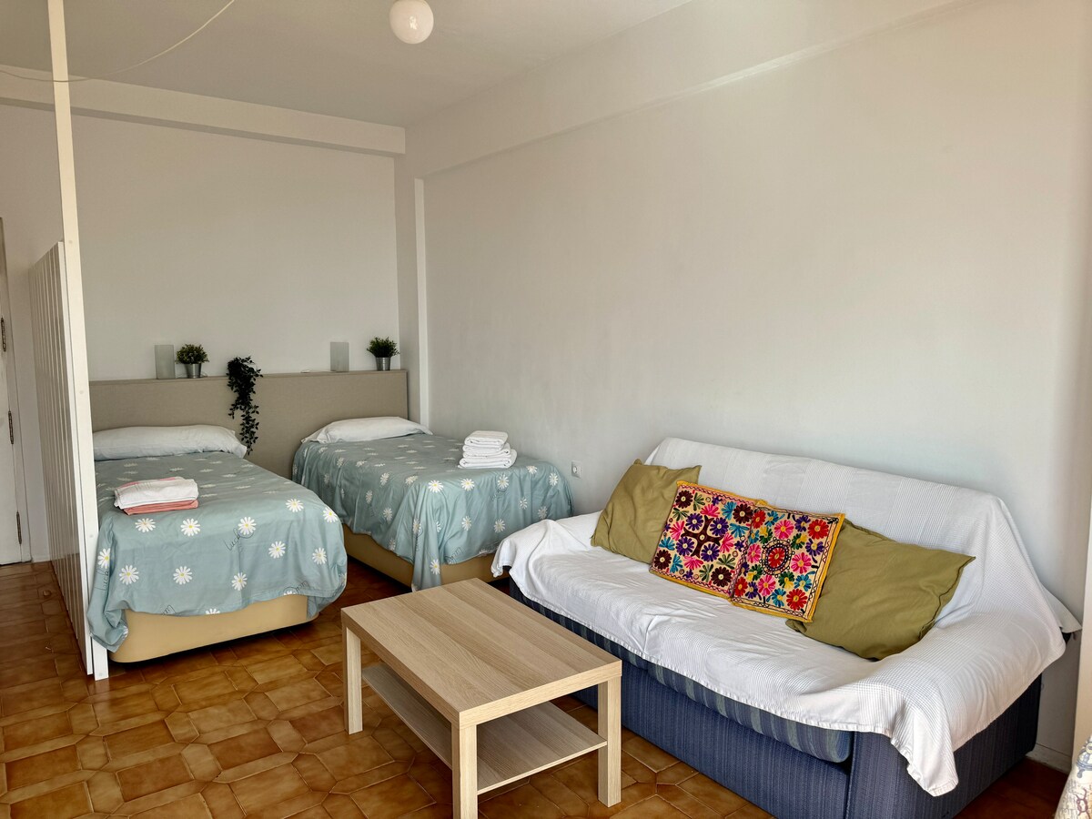 Living-bedroom area which offers 2 beds (0.90 m), seaview terrace, fully equipped exterior kitchen and bathroom (washbasin, toilet and shower).Guest access