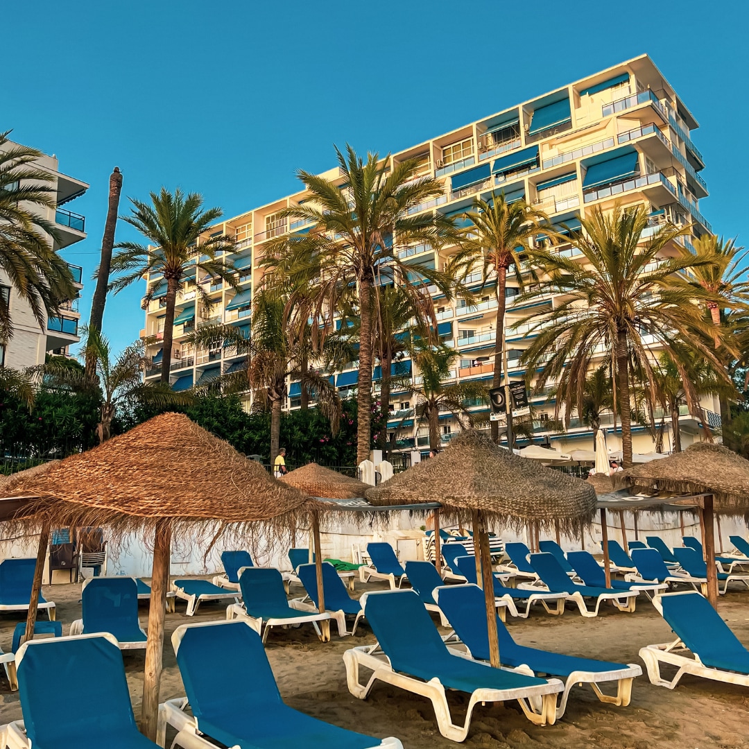 Sea views and direct access to the seaside promenade. Views to Parque de la Constitución, and 10 minute walk to Marbella’s Old Town. Next to restaurants and shops.
