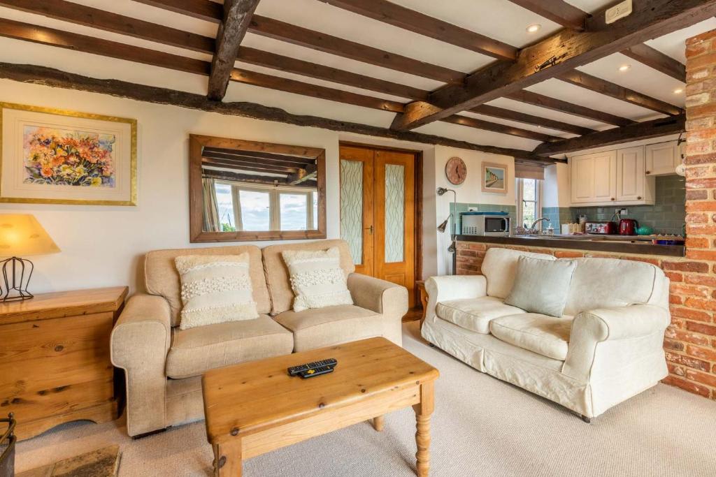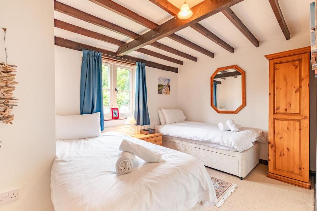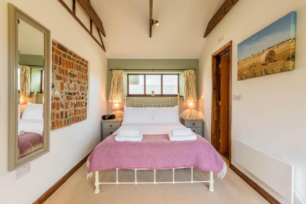 Woodfalls Barn features four inviting bedrooms: two double rooms (one with an ensuite bathroom), a twin room, and a single room.