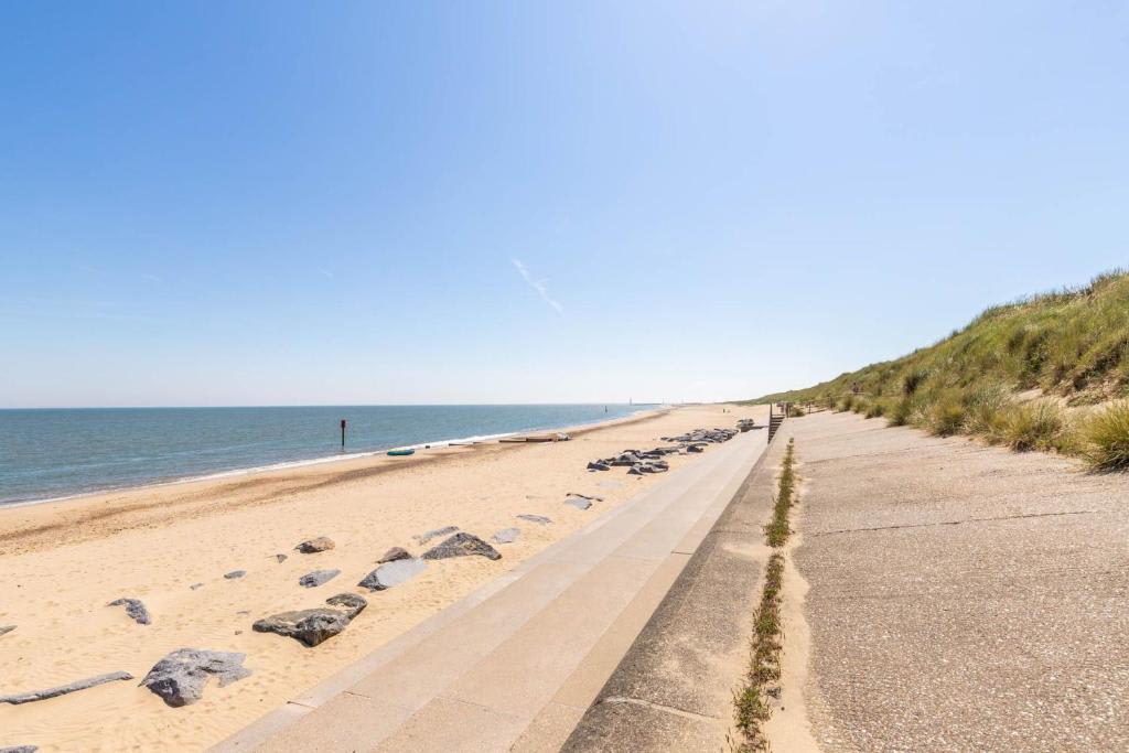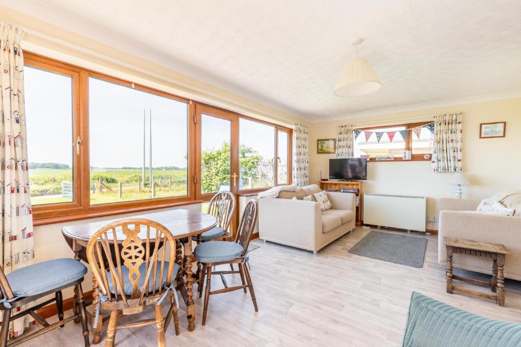 Outdoor seating is available at both the front and back, with an ‘L’-shaped sofa and bench at the front. Just a short walk away, guests can enjoy Eccles-On-Sea Beach, perfect for sunsets. The property is heated by electric night storage heaters for winter stays.