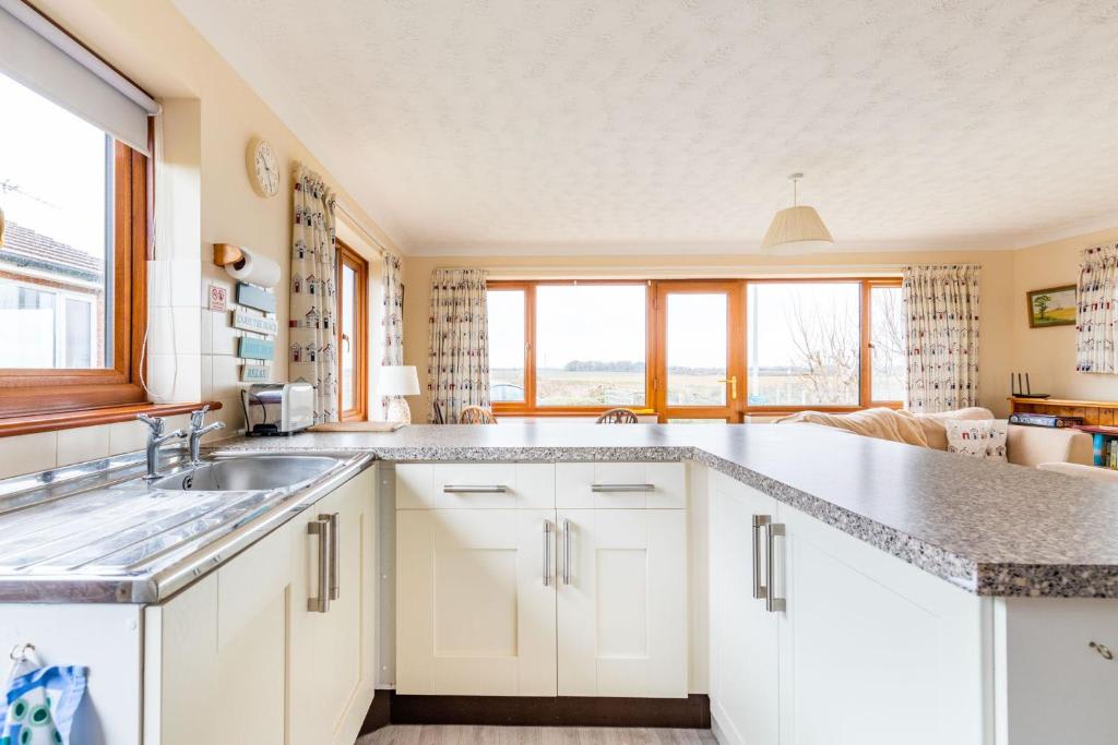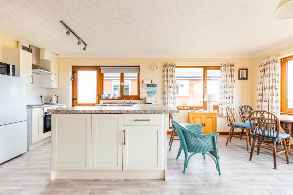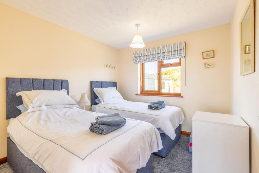 Breezy Bungalow is a single-level home featuring two bedrooms—one with a double bed and the other with twin singles. The family bathroom includes a shower cubicle, wash basin, and W/C.At the front, the open-plan kitchen-living-diner boasts stunning countryside views. This sociable space has two comfy sofas, a TV, DVD player, and a selection of board games and books for evening entertainment. The fully equipped kitchen includes a fridge, freezer, and washing machine, with an extendable dining table for four.