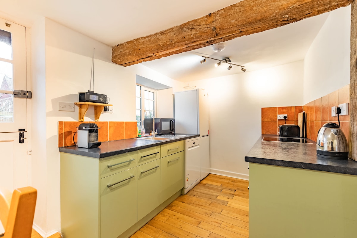Step into the welcoming living room, where you'll find two comfortable leather sofas and plenty of space to relax. Entertainment options include a TV, family board games, and Wi-Fi throughout. On cooler Norfolk evenings, cosy up by the wood burner for added warmth and comfort.The well-equipped kitchen, located next to the lounge, comes with all the essentials, including a fridge freezer, electric oven, hob, washing machine, and dishwasher. You'll also find a microwave, Nespresso coffee machine, kettle, and toaster. Turn up the kitchen stereo and enjoy some music while preparing meals. The dining area comfortably seats up to six guests, perfect for family meals or planning the day's adventures.