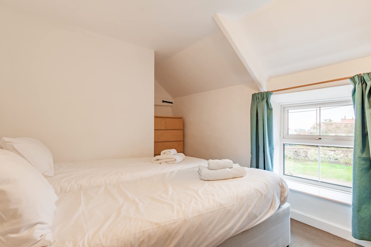 You can rest comfortably in one of the cottage's three inviting bedrooms during your stay: a cosy double room, a twin room with two single beds, and a bunk bed room. Each bedroom is thoughtfully furnished with crisp, white linens and ample clothing storage.
