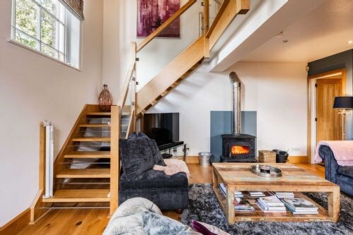 The open-plan lounge, with tall ceilings and a cosy wood burner, is perfect for relaxing after a family meal. Enjoy Sky Q and Netflix, or play board games together in this welcoming space.The well-equipped kitchen includes a fridge, freezer, oven, microwave, dishwasher, and coffee machine. The dining area seats up to six guests.