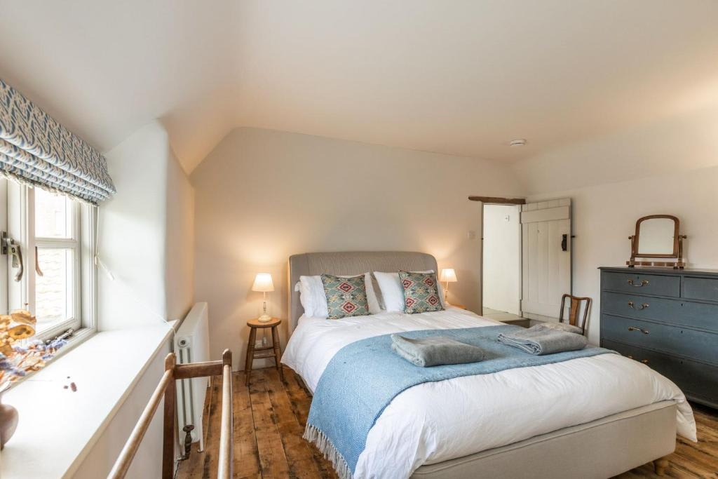 The homely reception room, located to the left of the entrance, features cosy seating around a charming woodburner.White End features two inviting bedrooms. The master bedroom includes a king-size bed with fresh linen, ample wardrobe space, and a chest of drawers, plus a private staircase for easy access to the kitchen. The second bedroom is a cosy twin room.