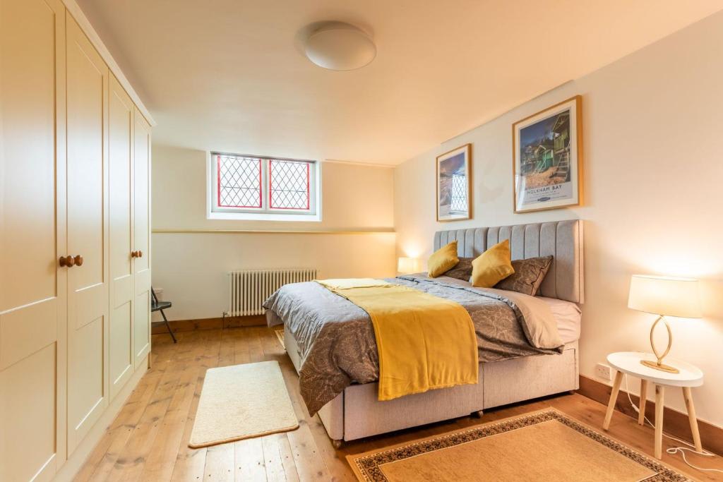 This is such a lovely find, lovely features kept from when the property was a chapel (wood carvings, stain glass windows, wooden beams). Everything you could need for a relaxing stay. Places in Gorleston are walkable, bus easy to get to Great Yarmouth. This place does have wooden steps to both floors, the only shower is on the top floor. Bathroom on ground floor has fixtures for a shower but nothing connected. Overall we had a lovely few days stay.