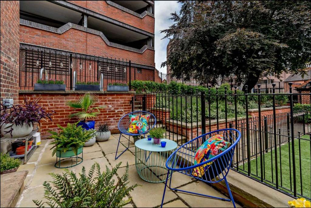 Outside, the south-facing patio garden is ideal for soaking up the sun.