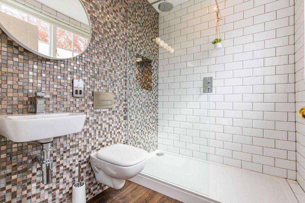 The bathrooms are elegantly designed with metro and mosaic tiles and feature rainfall showers for a spa-like experience.