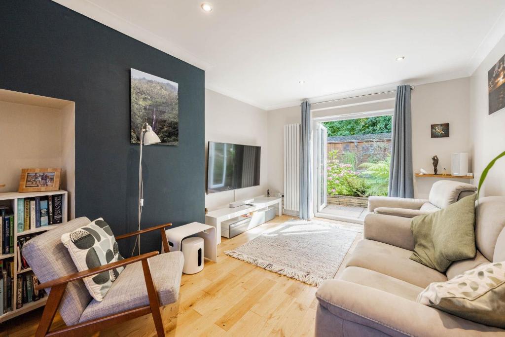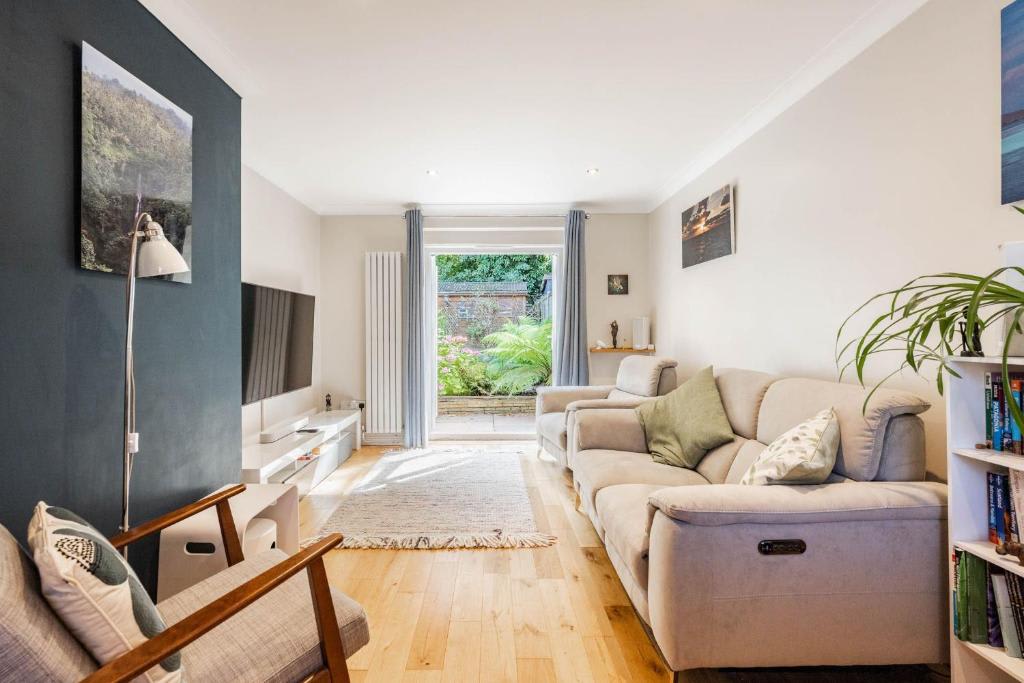 The secure, dog friendly garden has outdoor furniture and a parasol, ideal for al fresco dining. The driveway offers parking for two cars, just minutes from the city centre.
