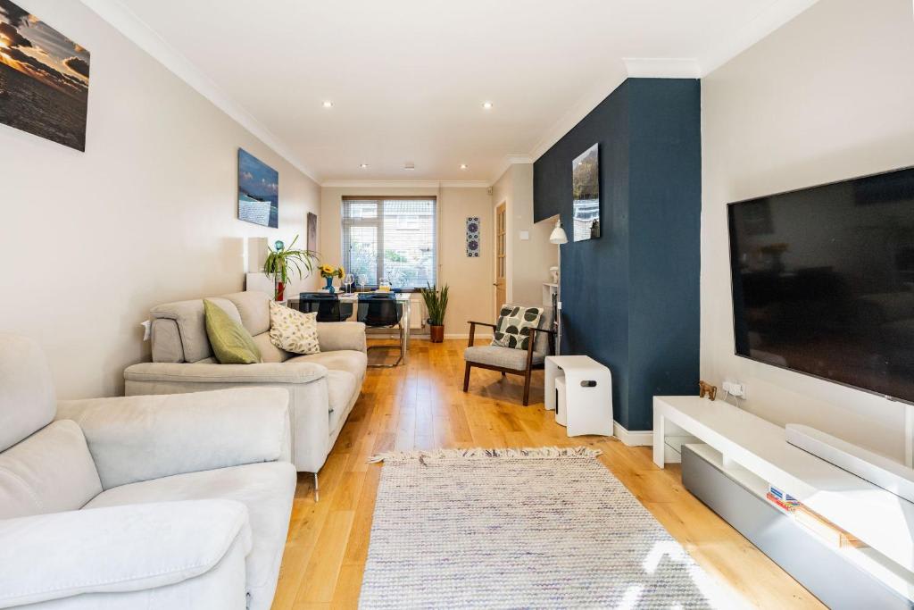 The lounge provides a relaxing space with a Smart TV, Bluetooth speaker, books, and board games.The fully equipped kitchen includes a gas hob, oven, fridge, freezer, dishwasher, microwave, and a pod coffee machine. The dining area is perfect for family meals or casual dining.