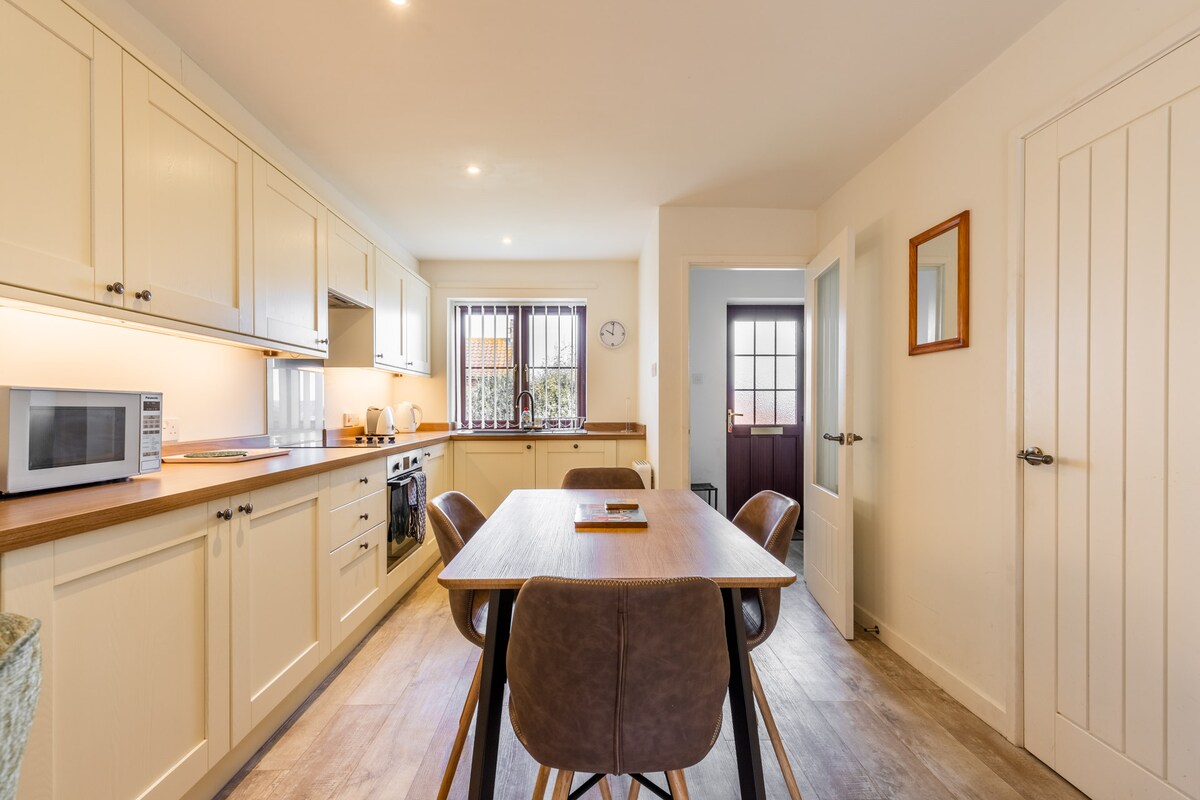 The open-plan ground floor includes a spacious kitchen, dining area, and cosy living room. The lounge offers plenty of seating and access to the courtyard patio.The kitchen is well-equipped with an electric oven, hob, fridge, dishwasher, microwave, toaster, and kettle, plus ample surface space for meal prep. A dining table comfortably seats all guests.