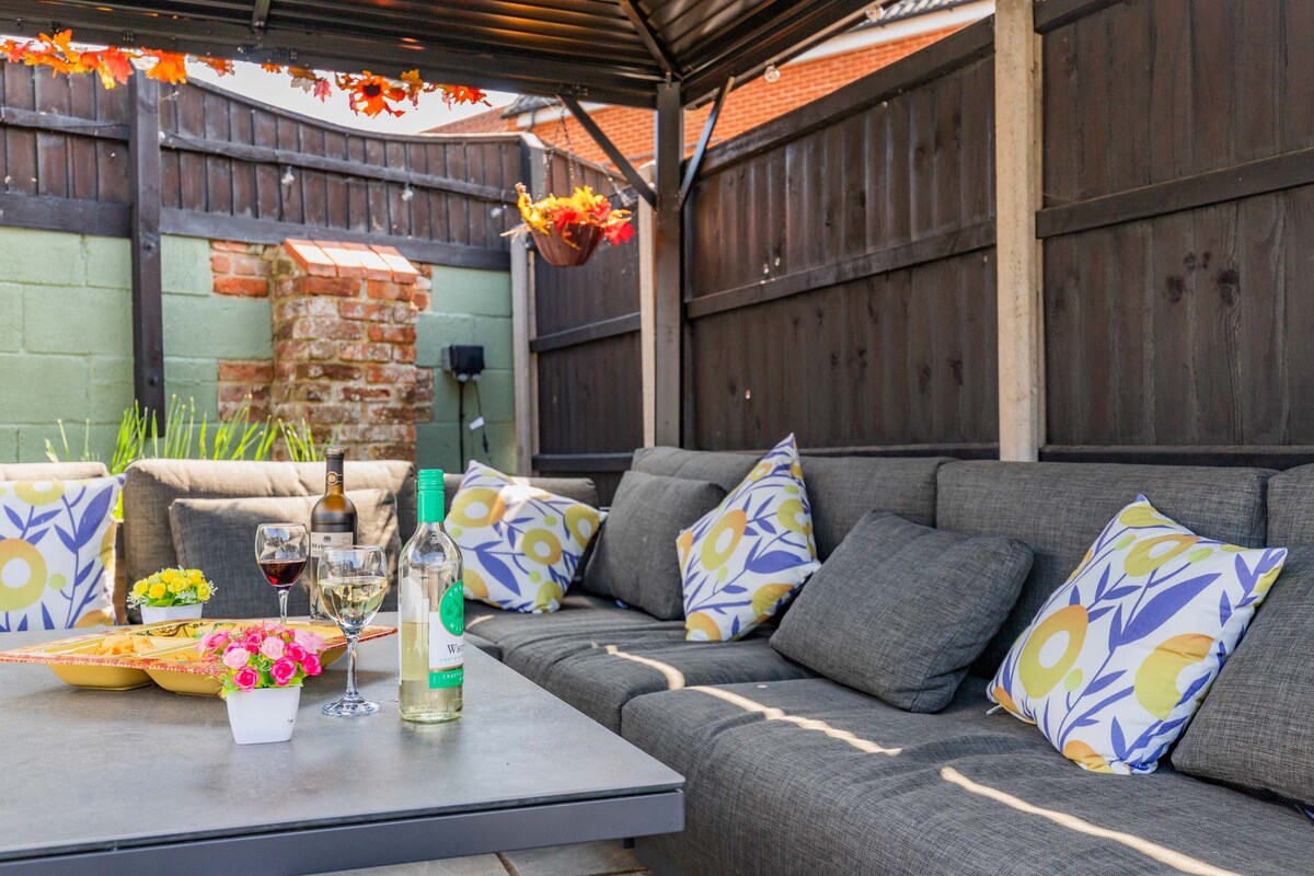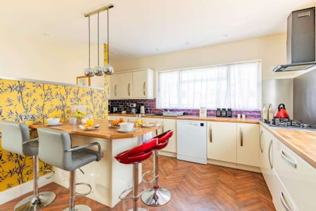Unwind in the spacious lounge, featuring plush seating and a Smart TV.The kitchen is equipped with modern appliances, including a dishwasher, microwave, toaster, and coffee machine. There’s also a breakfast bar for four, perfect for quick bites.