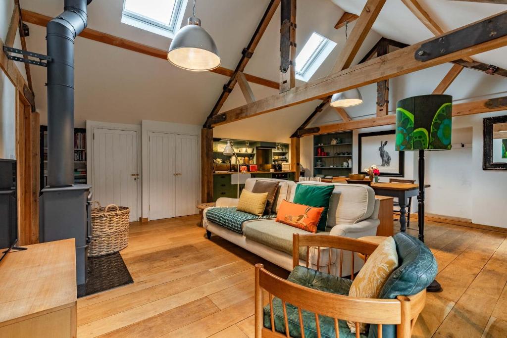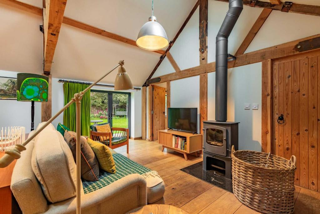 Relax by the wood burner in the charming lounge, with a Smart TV, Bluetooth speaker, and board games.The fully equipped kitchen has everything you need, including a coffee machine and a charming butler sink. Enjoy meals at the dining table and use the washing machine located in the outside utility area.