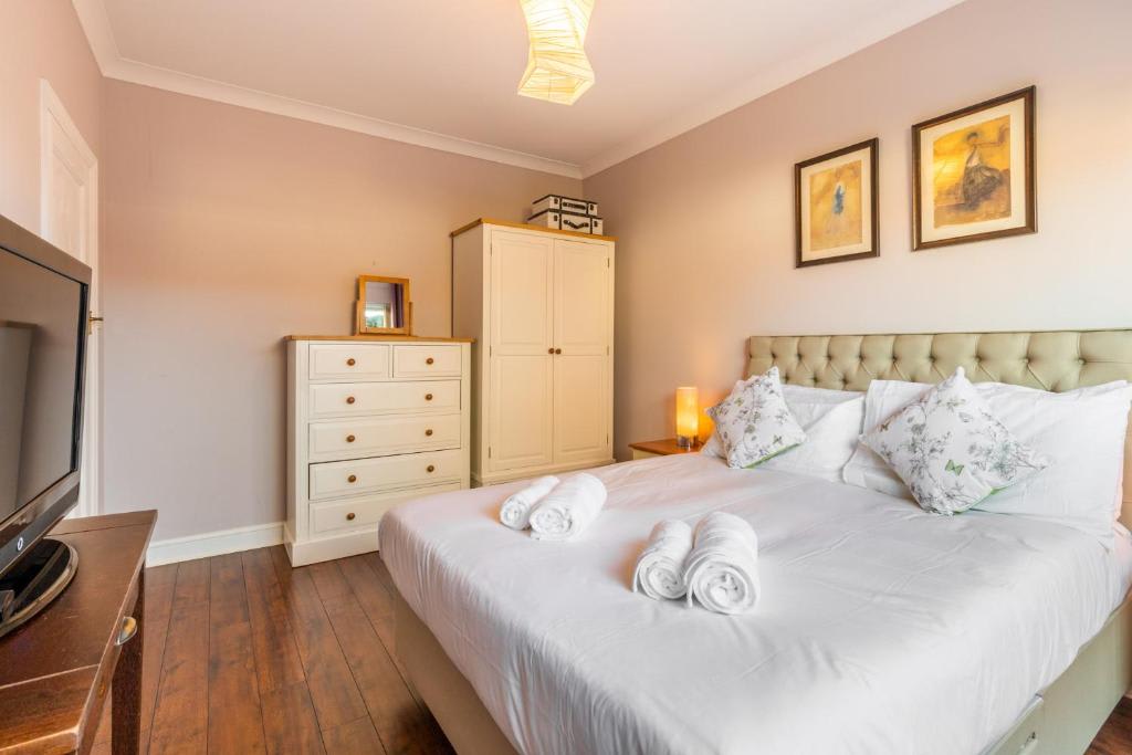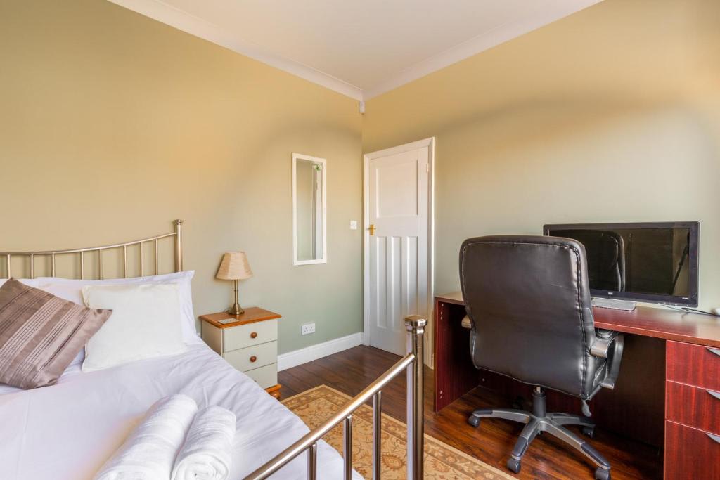 Applegarth House features three inviting bedrooms: a king-sized room, a double room, and a twin room. The thoughtfully decorated king-sized room includes clothing storage and a small TV, while the double room is equipped with a desk. The twin room has two single beds.