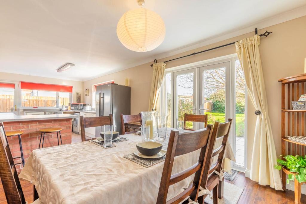 Applegarth House is a spacious bungalow, accommodating six guests, on the outskirts of Norwich City. Ideal for city access and exploring Norfolk Broad hot spots like Wroxham and Hoveton. Featuring three bedrooms, a fully equipped kitchen, dining area, living space, and a large garden.