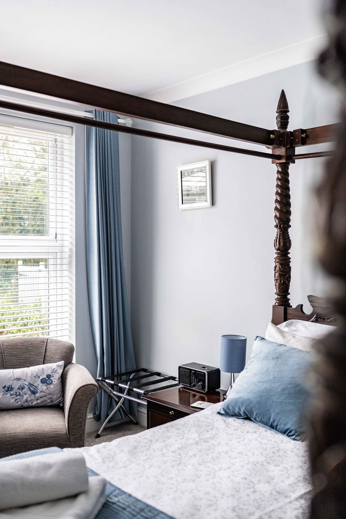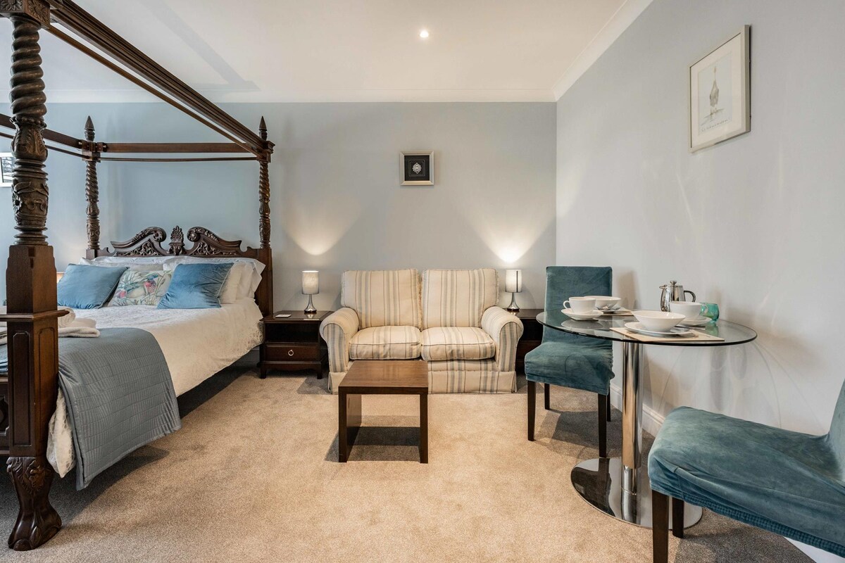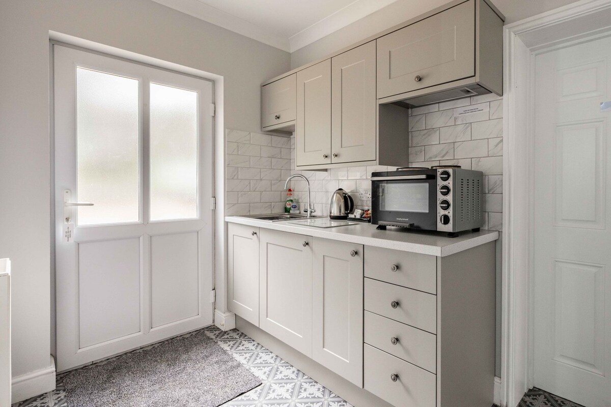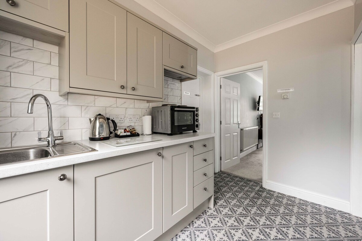 Mallard Annex is a bright and spacious annex with a private entrance and modern furnishings. It features a large king-sized bedroom with a TV, two-seater sofa, and dining table for two.The kitchenette, located at the entrance, includes a kettle, toaster, microwave oven, two hobs, fridge, and sink.