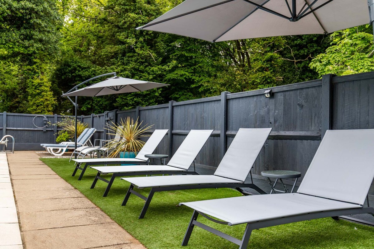 The Muscovy apartment also features a private, enclosed courtyard, perfect for pets or children. Guests can enjoy two acres of shared gardens, a large enclosed dog exercise area, and an outdoor solar-heated pool (available from 17th May to the end of September) with seating, sun loungers, and parasols provided.
