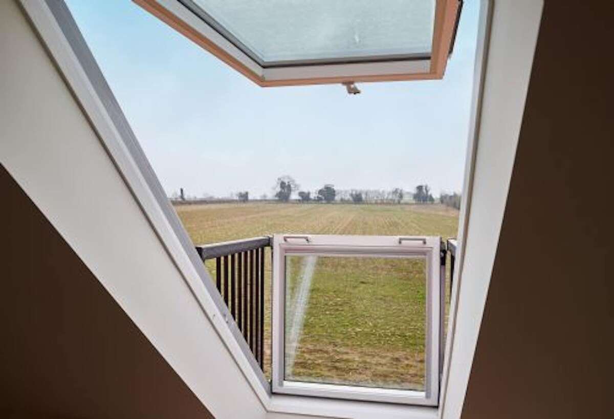 Outside, the private deck provides a tranquil setting with stunning views of the Norfolk countryside.