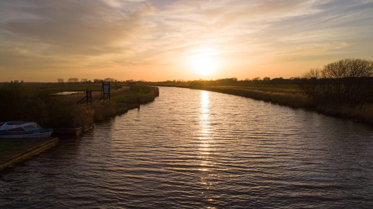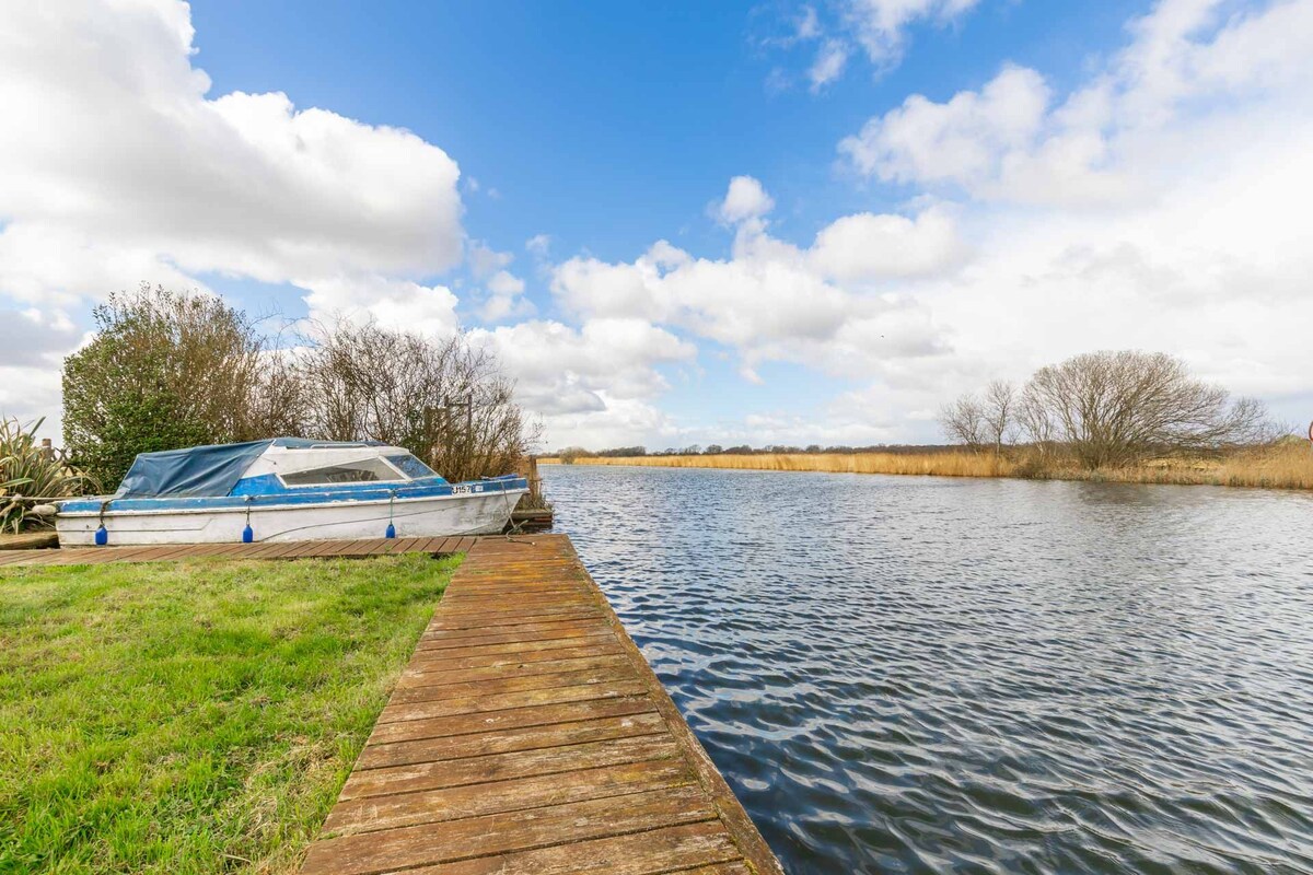 Tide & Time is located just outside Potter Heigham, home to the famous Hickling Broad. This riverside accommodation offers two bedrooms, a lounge, fully equipped kitchen, bathroom with a power shower, and a decked area with direct river access.The open-plan living area includes comfortable seating, a flat-screen TV, DVD player, foldable dining table, and a fully equipped kitchen with a coffee machine.