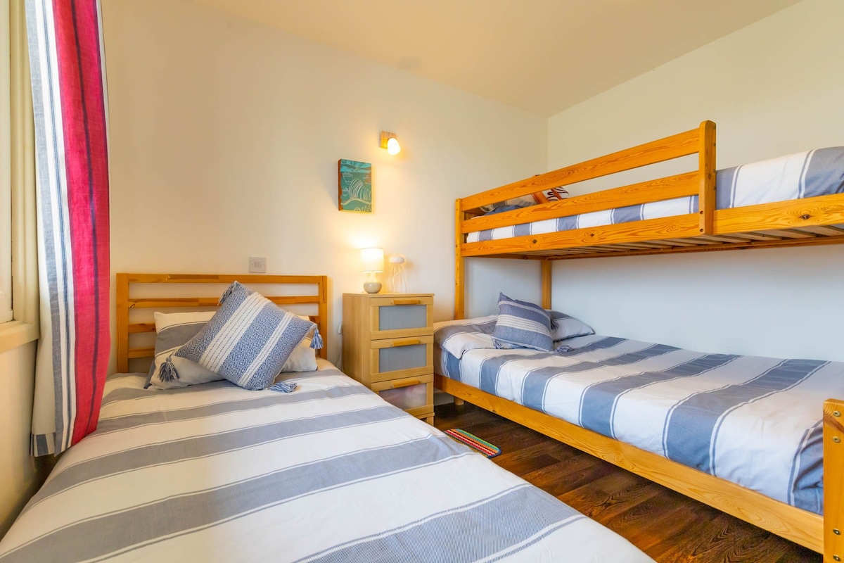 Sleeping up to six (including at least two children), the first bedroom has a double bed, while the second features a double bed, single bunk (for children only), and a single bed.