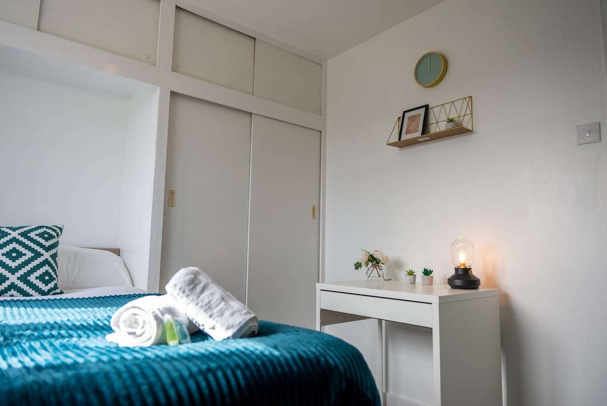 When you arrive at the property, there is free parking is available on street. You can park anywhere as the whole street is free to park on, however please do no park in front of anyone’s driveway or restrict any access.The property is the one with the blue door. Once parked, go to the front door where the key safe is located. The key safe is the cupboard to the right of the front door and is the key safe on the left.