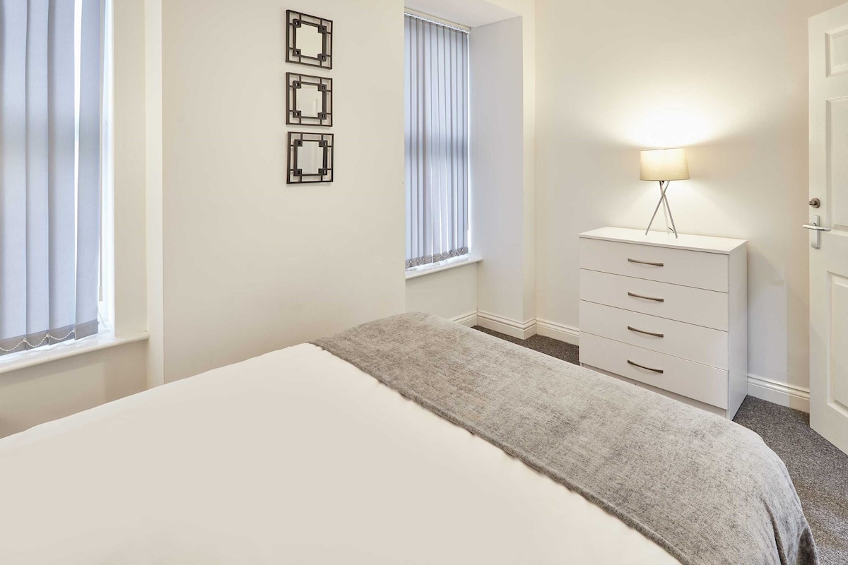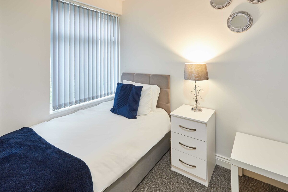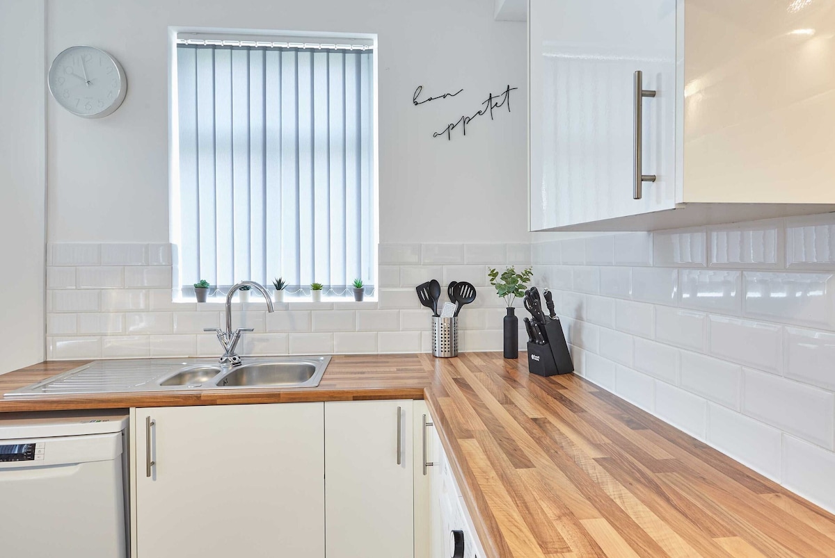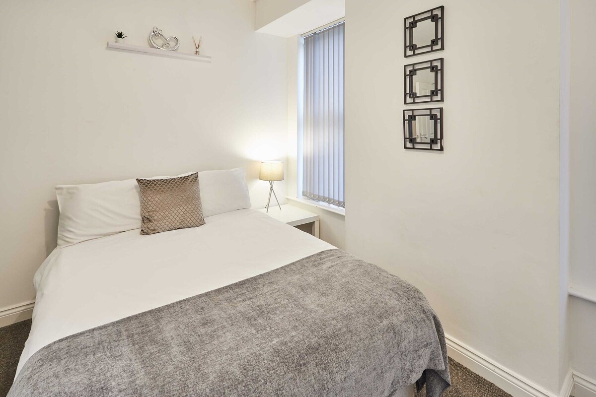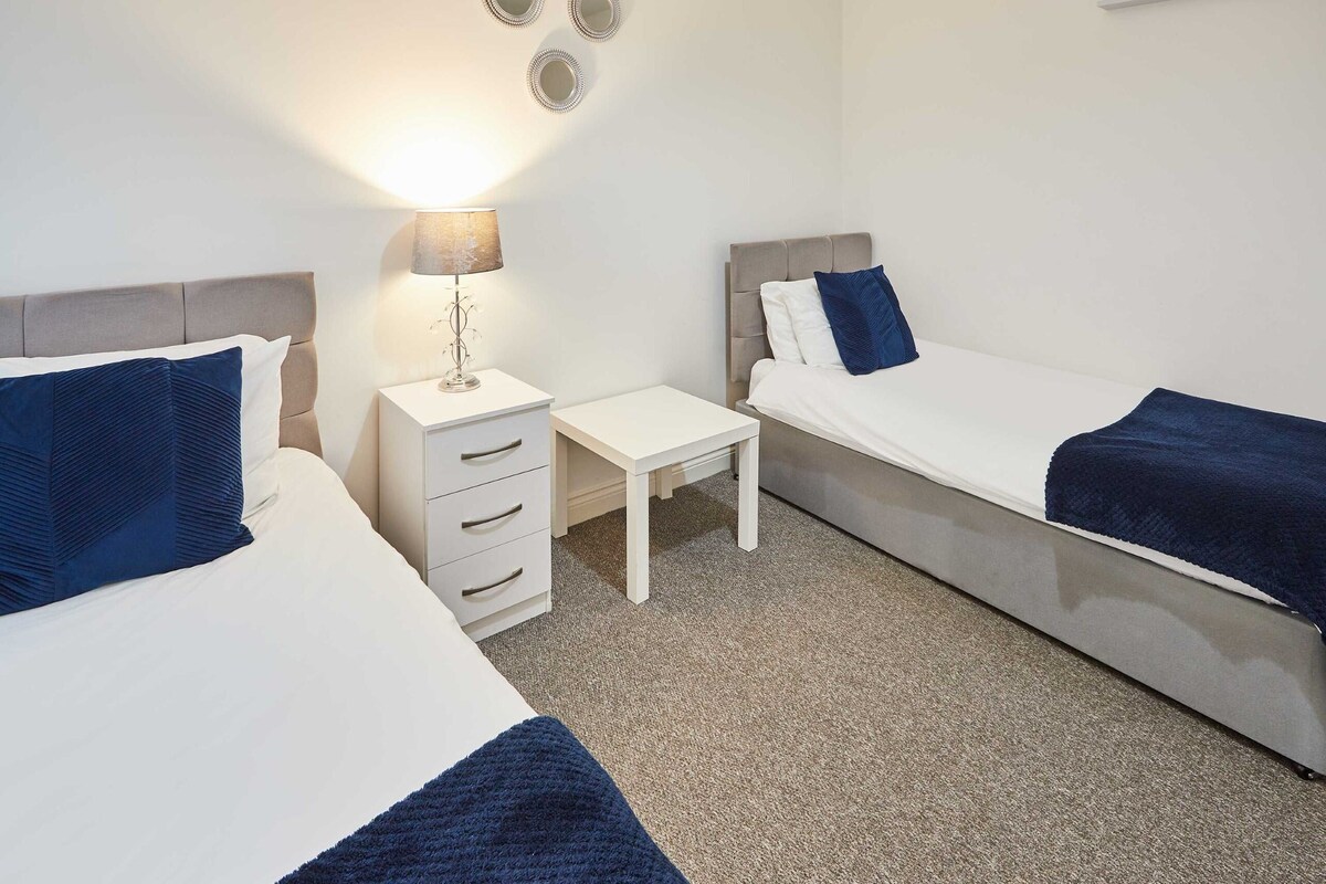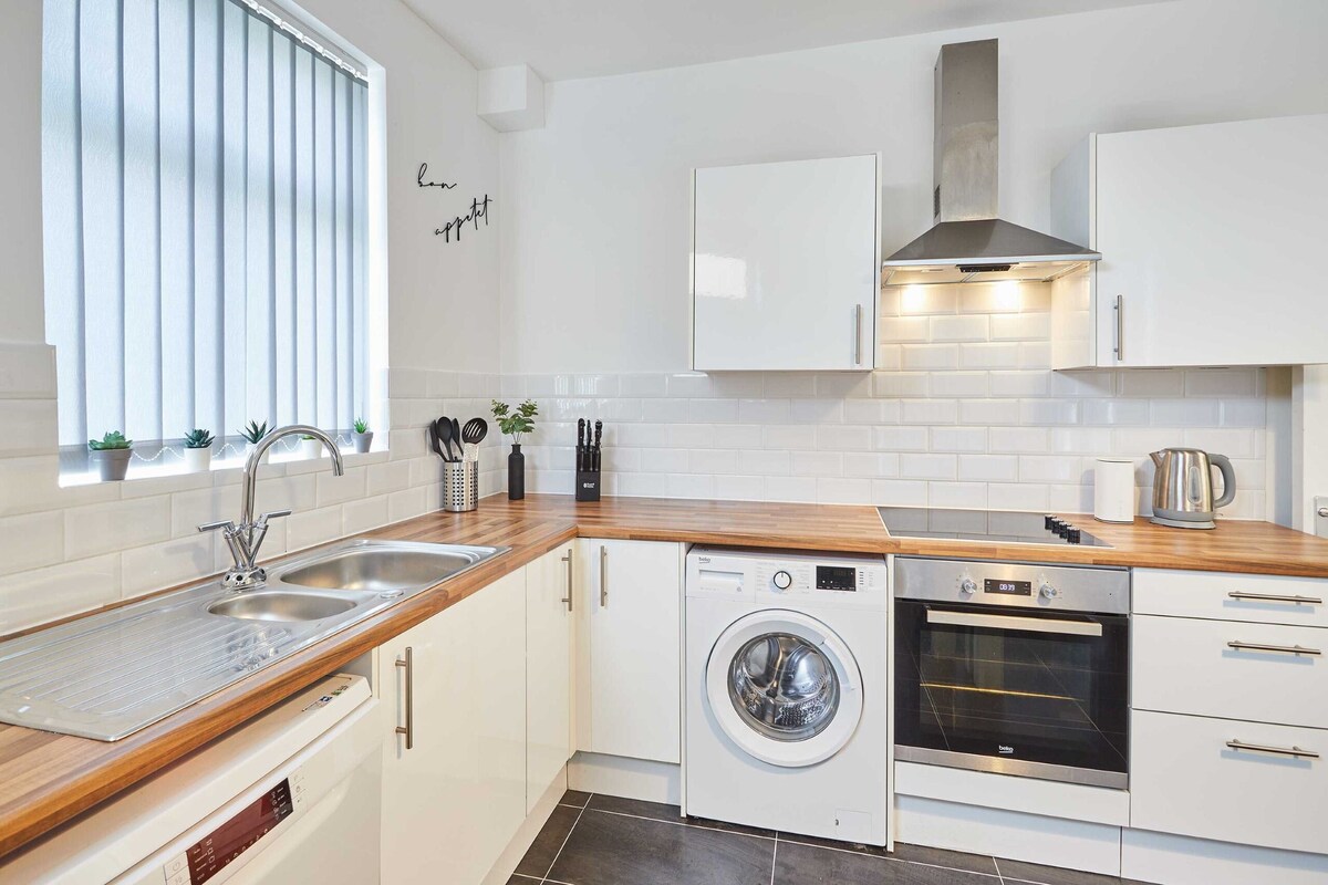 The living area features a comfortable double sofa bed, with extra linen available upon request for your convenience. Enjoy a movie night with Netflix provided for your entertainment. The property includes two well-appointed bedrooms: Bedroom 1 offers a double bed, while Bedroom 2 is furnished with two single beds, ensuring a comfortable stay for all guests.Enjoy a seamless stay with our range of amenities designed for your comfort. Benefit from free on-street parking and the flexibility of 24/7 self check-in. Stay connected with free WiFi, and find all bed linen, towels, a hairdryer, and toiletries provided. The fully equipped kitchen includes a fridge freezer, dishwasher, washing machine, toaster, microwave, kettle, cutlery, cookware, and cooking utensils, making meal preparation easy. Dine at the table with chairs, and for added convenience, an iron and ironing board are included. Relax with the Smart TV and Netflix provided, and enjoy being close to all main amenities for a convenient and enjoyable stay.