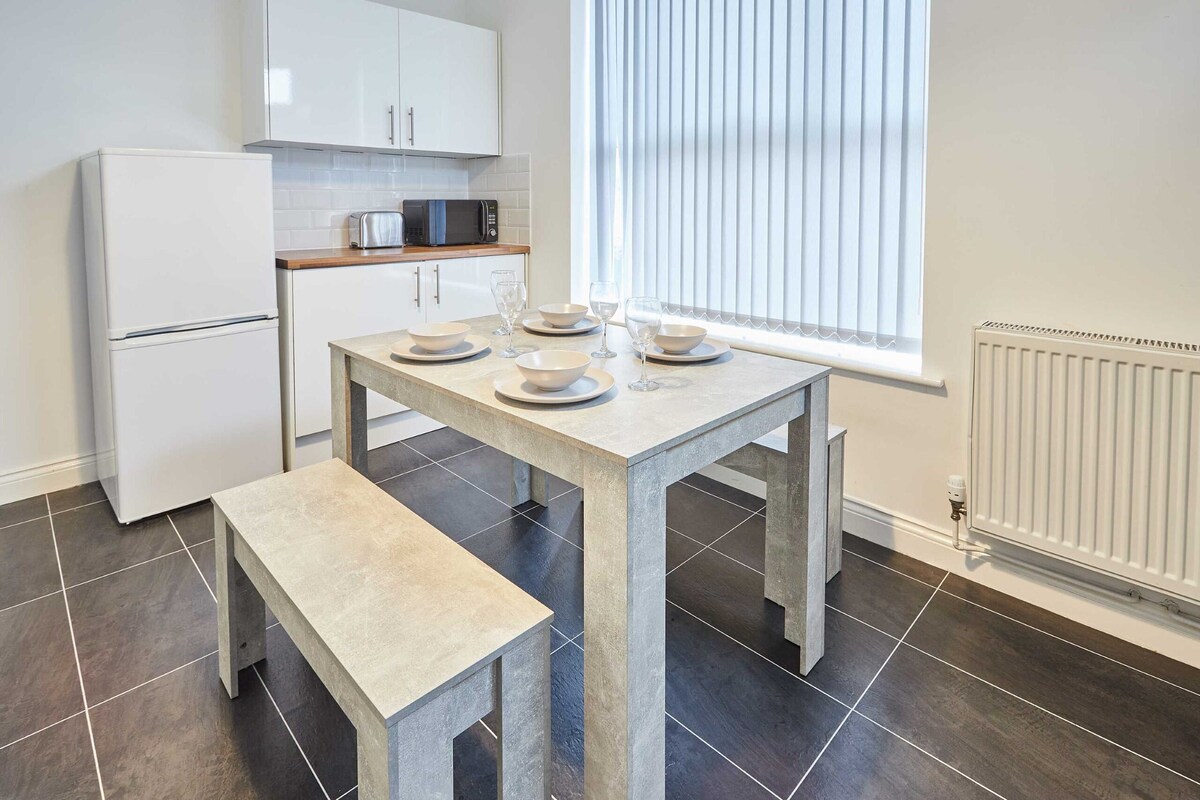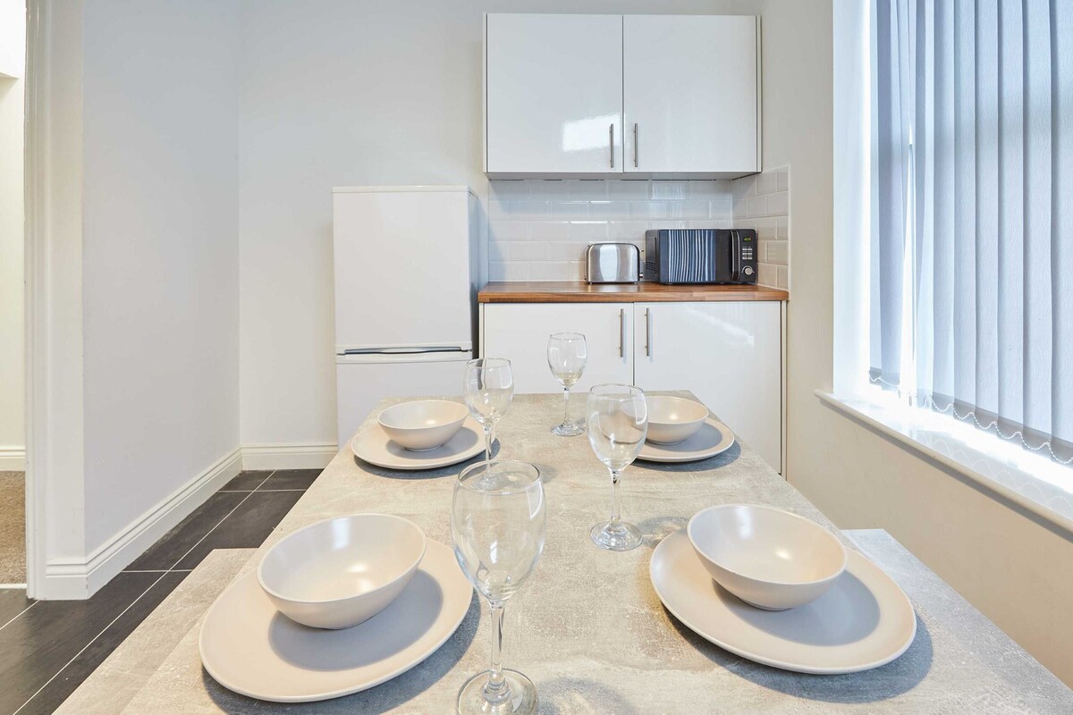 Enjoy a seamless stay with our range of amenities designed for your comfort. Benefit from free on-street parking and the flexibility of 24/7 self check-in. Stay connected with free WiFi, and find all bed linen, towels, a hairdryer, and toiletries provided. The fully equipped kitchen includes a fridge freezer, dishwasher, washing machine, toaster, microwave, kettle, cutlery, cookware, and cooking utensils, making meal preparation easy. Dine at the table with chairs, and for added convenience, an iron and ironing board are included. Relax with the Smart TV and Netflix provided, and enjoy being close to all main amenities for a convenient and enjoyable stay.