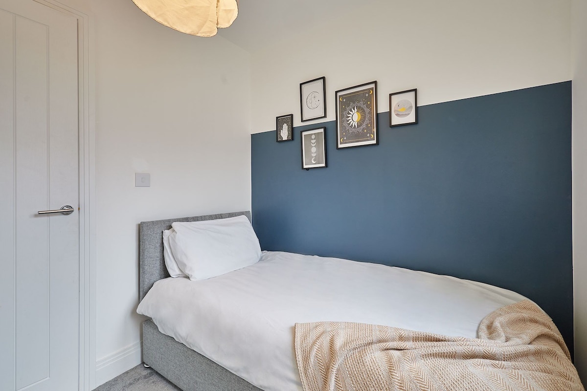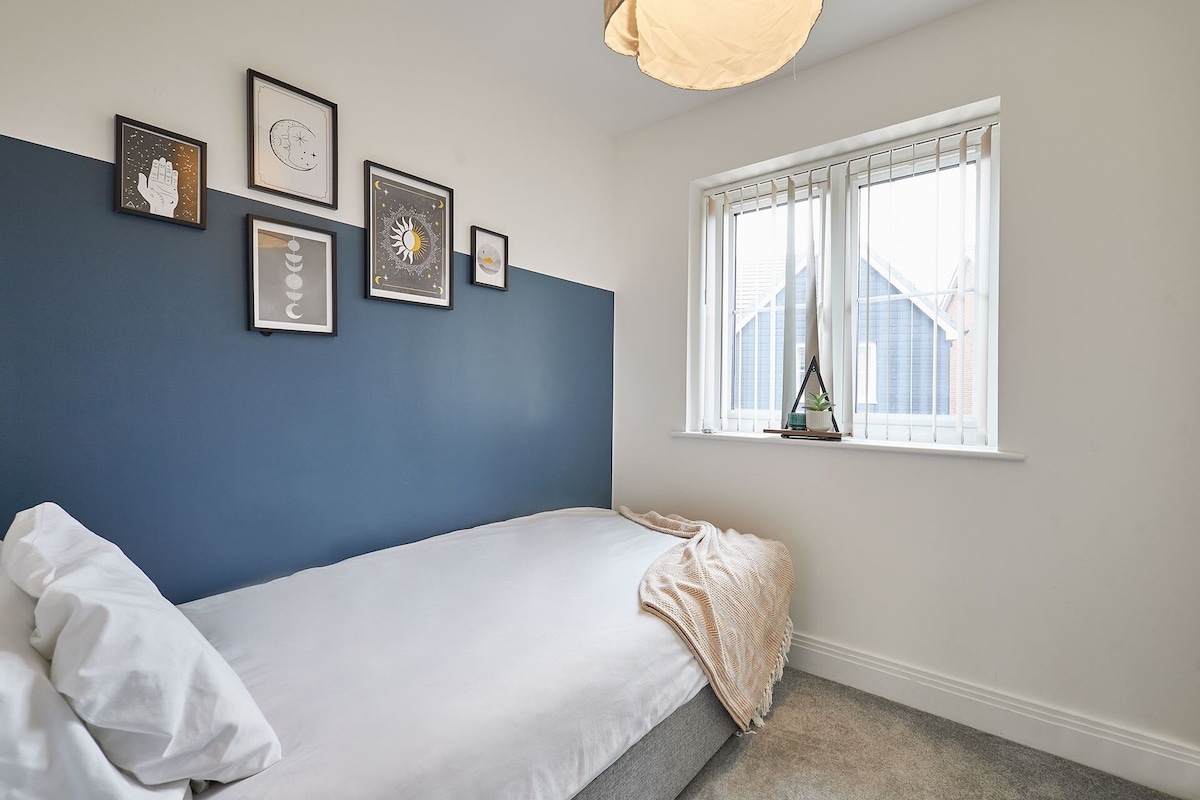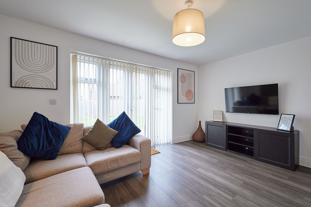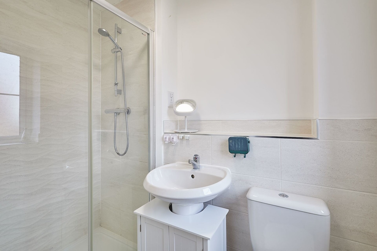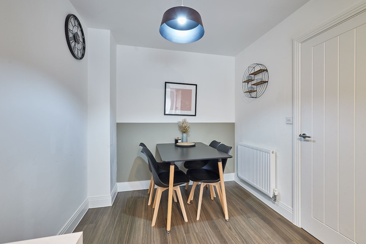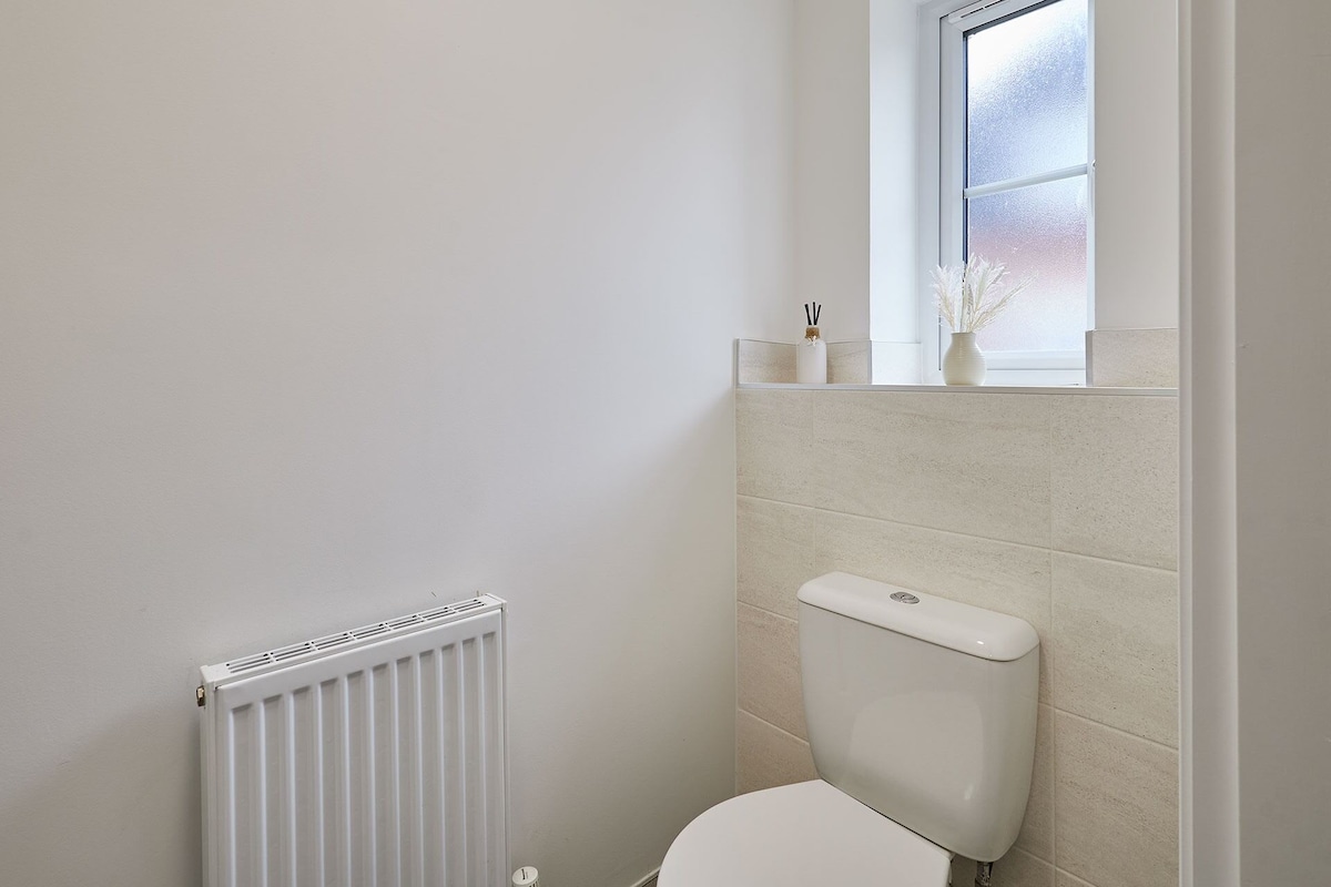 The cosy living area features a comfortable 3-seater sofa, perfect for unwinding, along with a Smart TV that includes Netflix, all set up and ready for your entertainment. The property offers three well-appointed bedrooms: Bedroom 1 boasts a double bed, a wardrobe, and the added convenience of an en-suite bathroom. Bedroom 2 includes a single bed, while Bedroom 3 is furnished with two single beds, making it ideal for families or groups. This home is designed to ensure a relaxing and comfortable stay for all guests.Enjoy a stress-free stay with our range of amenities designed for your comfort and convenience. Benefit from free private parking and the flexibility of 24/7 self check-in. Stay connected with free WiFi, and find all bed linen and towels provided for your ease. We also supply toiletries for your comfort. The fully equipped kitchen features a fridge freezer, washer dryer, toaster, microwave, kettle, cutlery, cookware, and cooking utensils, making meal preparation effortless. Dine comfortably at the dining table with chairs, and for added convenience, an iron and ironing board are included. Relax in front of the TV with Netflix included. Located in a quiet neighbourhood, you'll be close to all main amenities for a pleasant and convenient stay.
