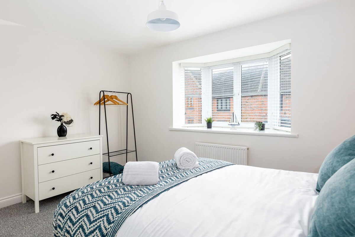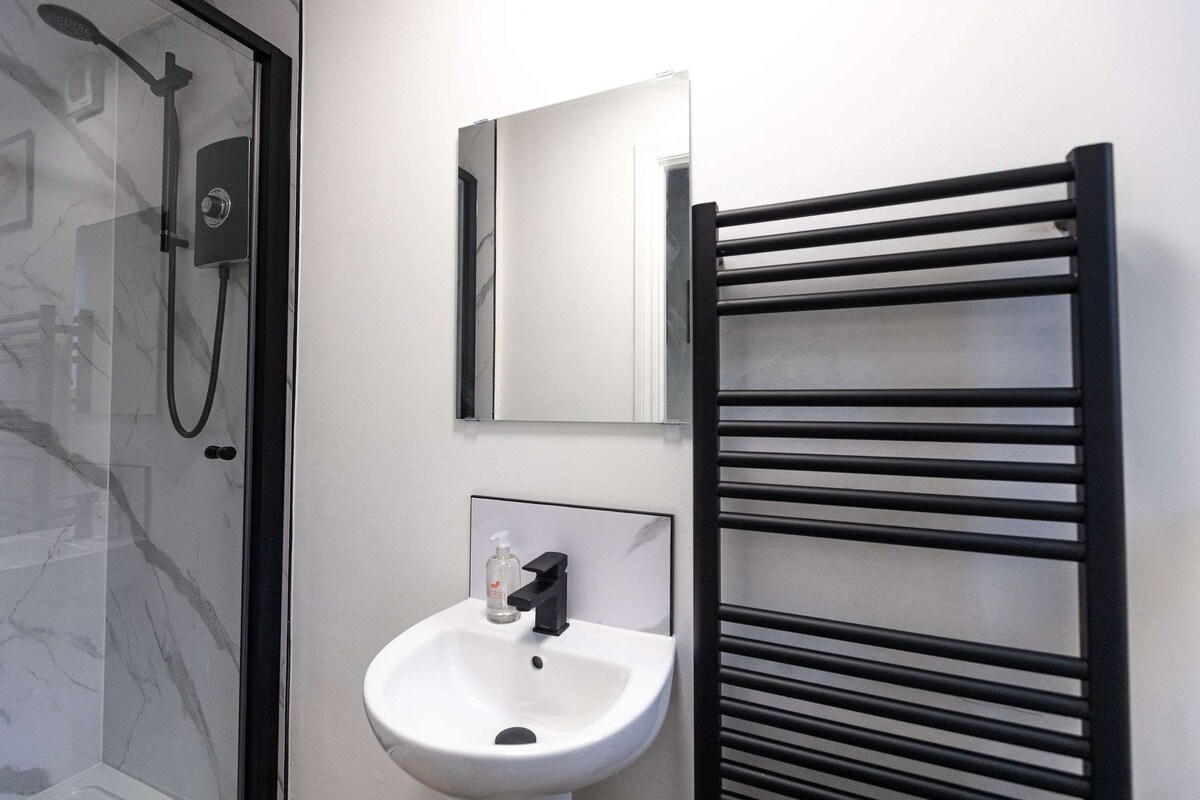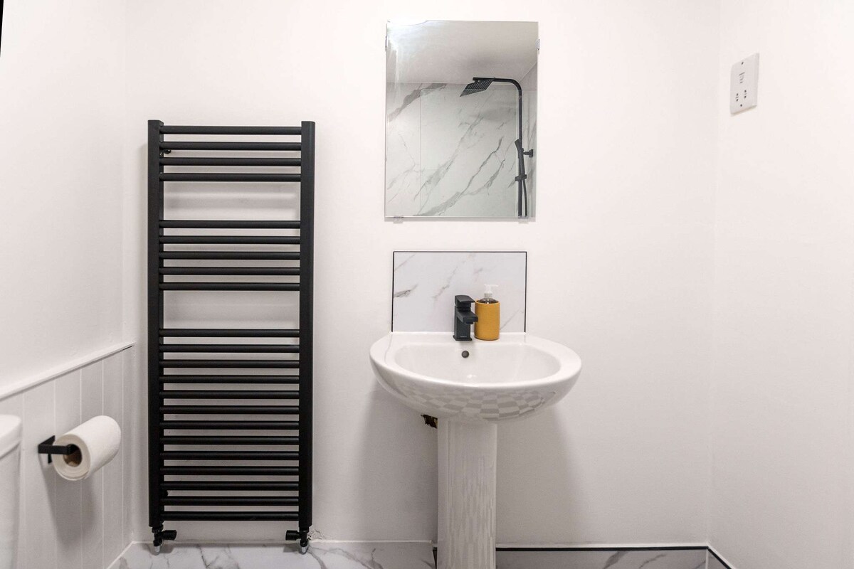 Relax in the comfortable living room, which features a four-seater sofa and a separate chair, perfect for unwinding after a day out. Adjacent to the living area is a dining space equipped with a table and four chairs, ideal for enjoying meals together. Entertainment is at your fingertips with a large Smart TV, complete with Netflix provided at no extra cost. The property includes three well-appointed bedrooms: Bedroom 1 offers both a double bed and a single bed, complemented by a chest of drawers, two clothes rails, and an en-suite bathroom; Bedroom 2 features a double bed, chest of drawers, and a clothes rail; and Bedroom 3 provides two single beds, a chest of drawers, and a clothes rail. Each room is thoughtfully furnished to ensure a comfortable and enjoyable stay.Enjoy a range of convenient amenities during your stay, including free private parking for up to two vehicles and 24/7 self check-in service for a seamless experience. Stay connected with free WiFi and relax with all bed linen and towels provided, along with a hairdryer and toiletries for your comfort. The dining area features a table and chairs, perfect for meals together. The fully equipped kitchen includes a fridge freezer, washing machine, toaster, microwave, kettle, cutlery, cookware, and cooking utensils. Additional amenities include an iron and ironing board, and a Smart TV with Netflix provided for your entertainment. The property also boasts a spacious garden, situated in a quiet neighbourhood close to all main amenities.