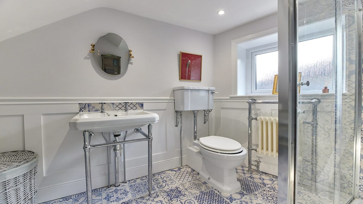 The bedroom at Peacock House is a tranquil haven. Fitted with a four-poster super-king size bed, guests will be guaranteed a quality night’s sleep throughout their stay. You can even enjoy the entirety of your evening in the room thanks to the flat-screen TV that is also available for use.