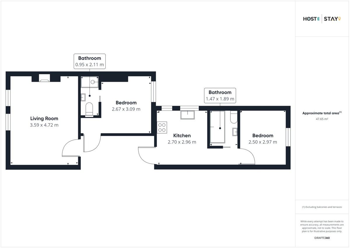 The apartment boasts two tranquil bedrooms. The master bedroom features a comfortable double bed with plush bedding and premium bed linens to ensure you have the best night’s sleep. The second bedroom has a queen size bed.