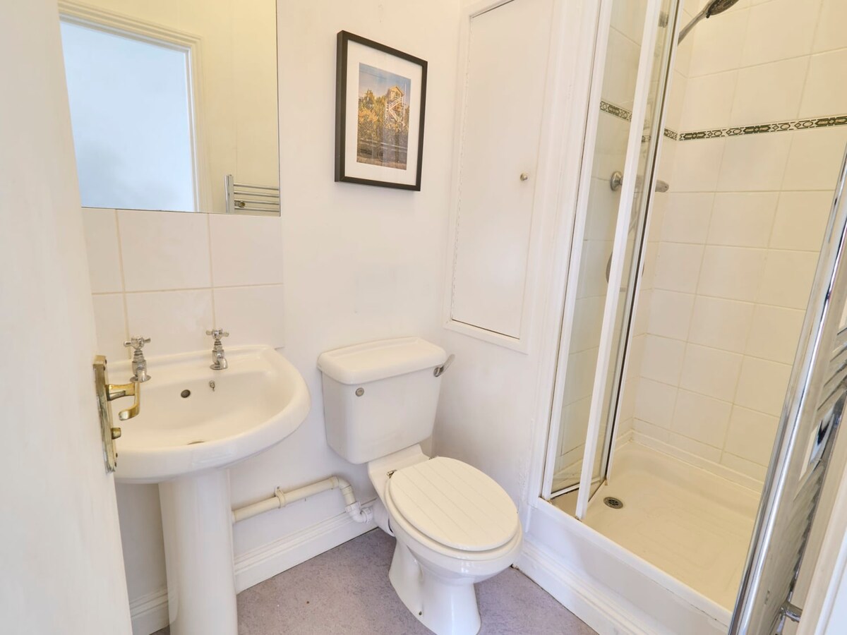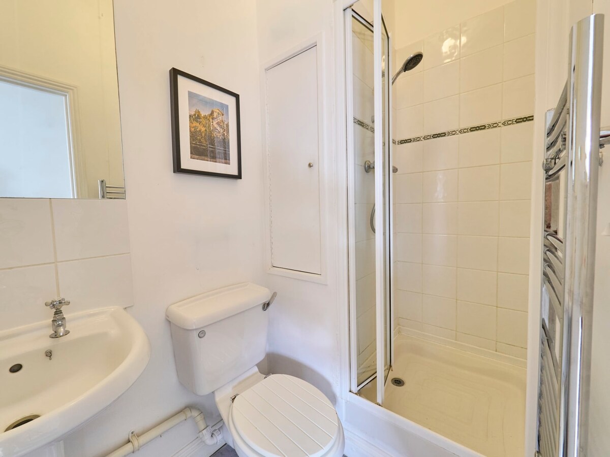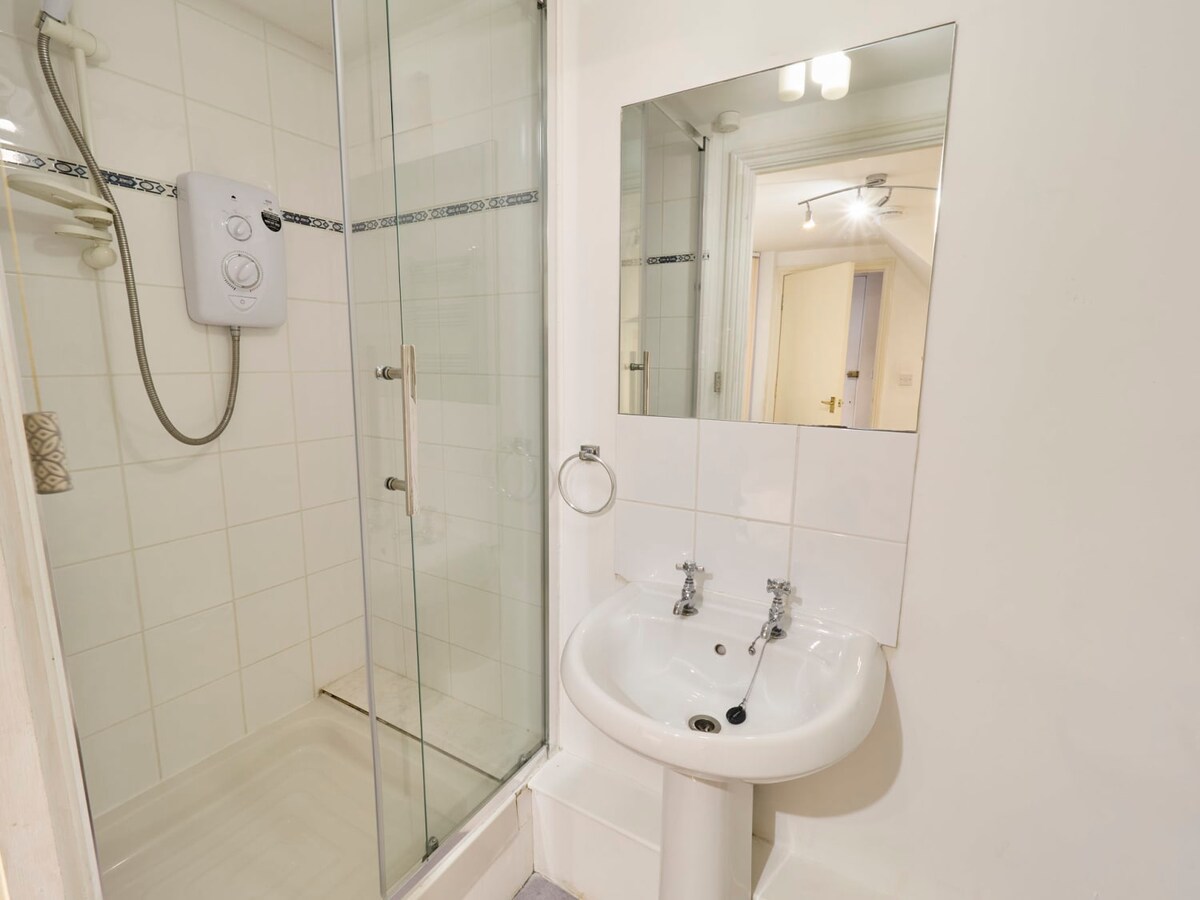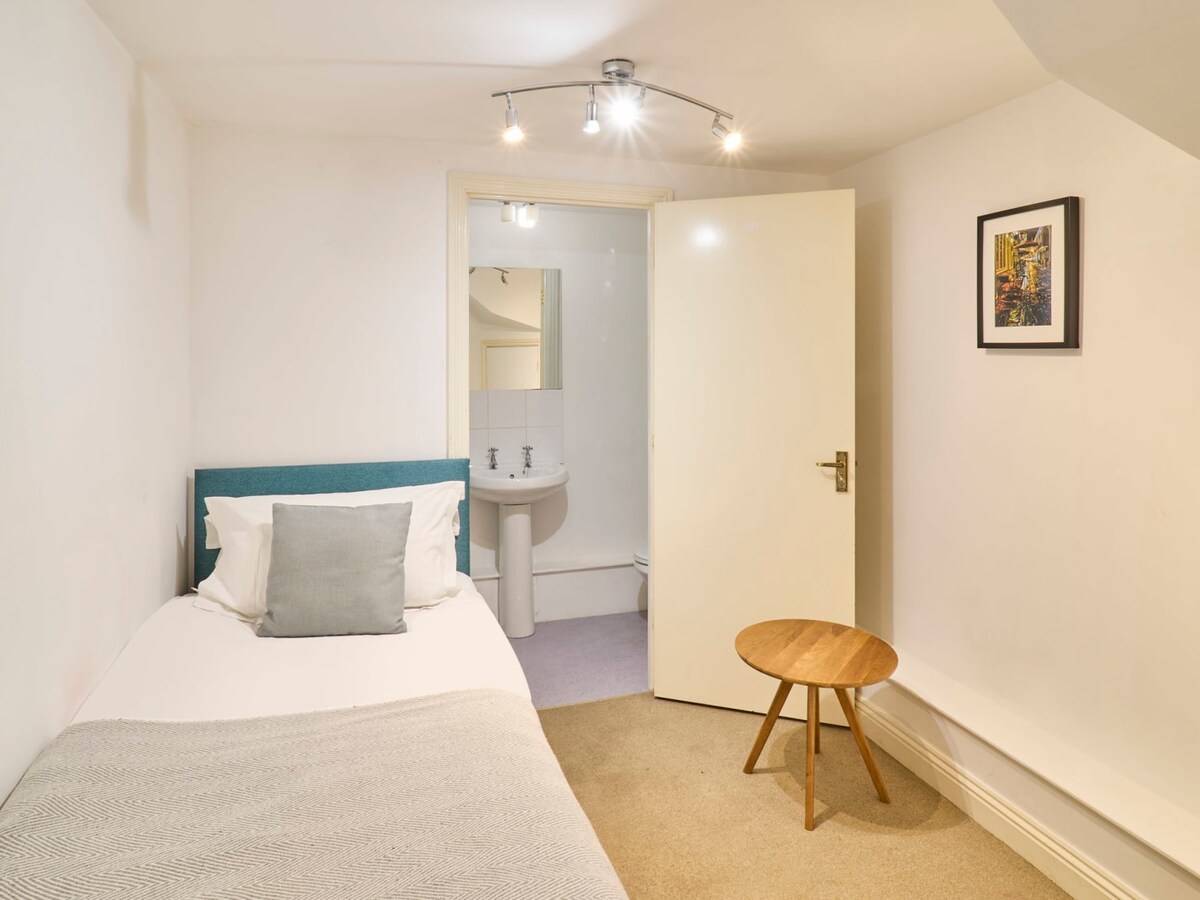 Head upstairs again to the second floor and you’ll reach the master bedroom and a second shower room. With a sloped ceiling and a neutral colour scheme, the bedroom is cosy and relaxing. You’ll enjoy your sleep in the comfy double bed which has soft linens and plush bedding.