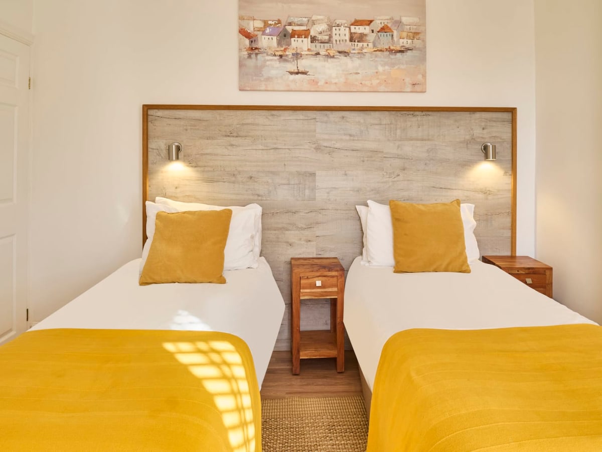 The first floor is home to three bedrooms. The master bedroom is fitted with a queen bed sleeping up to two guests comfortably. It's decorated with a desk which can be utilised for work, studies, or as a dressing table. The second bedroom can also sleep up to two guests and is fitted with a twin bed and the third bedroom is a single that can sleep one guest.