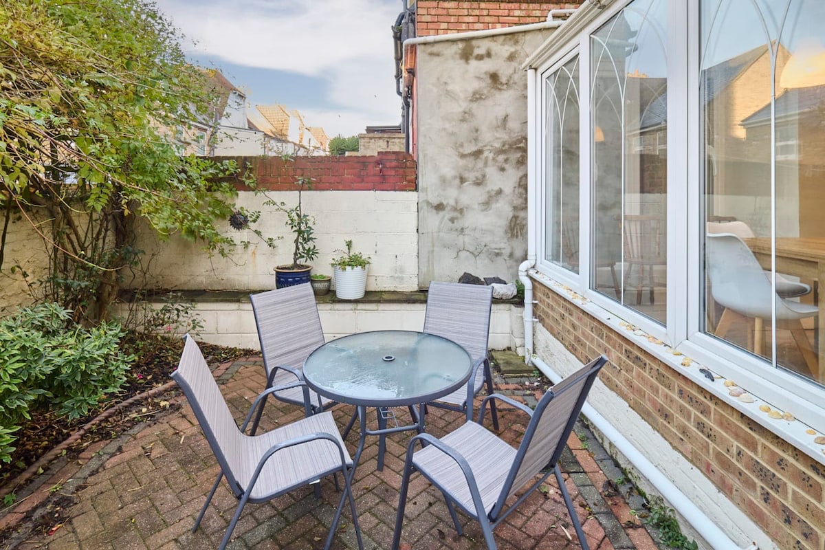 The location was absolutely perfect. Only used our cars twice. Once to Margate for a meal & to Broadstairs, however we realised we could have walked to Broadstairs. Would have been approx 30 minutes. Walk down to the seafront from the house was minutes & then into the town approx a further 10 minutes. The house is full of character, yes it does need some TLC which I have informed the owners BUT it’s a bargain of a price & for 8 of us as well. 4 adults & 4 children (all teenagers) we would be back for the location & for the price. Bedding was clean & mattresses were good. Pillows good as well. We were in Ramsgate to visit family & it was a lovely 4 days with amazing weather. House could benefit from board games maybe if guests have poor weather & need to keep younger children entertained. Kitchen is huge. Oven is amazing, so when cooking for 8 it’s perfect! Second loo, always handy. We knew it didn’t have 2 bathrooms but we all managed. It wasn’t a big deal.