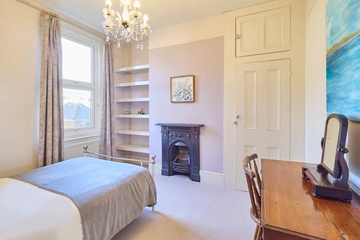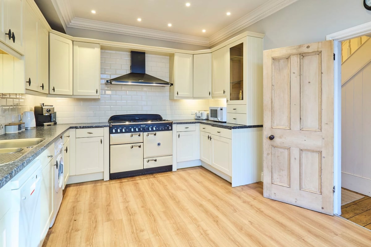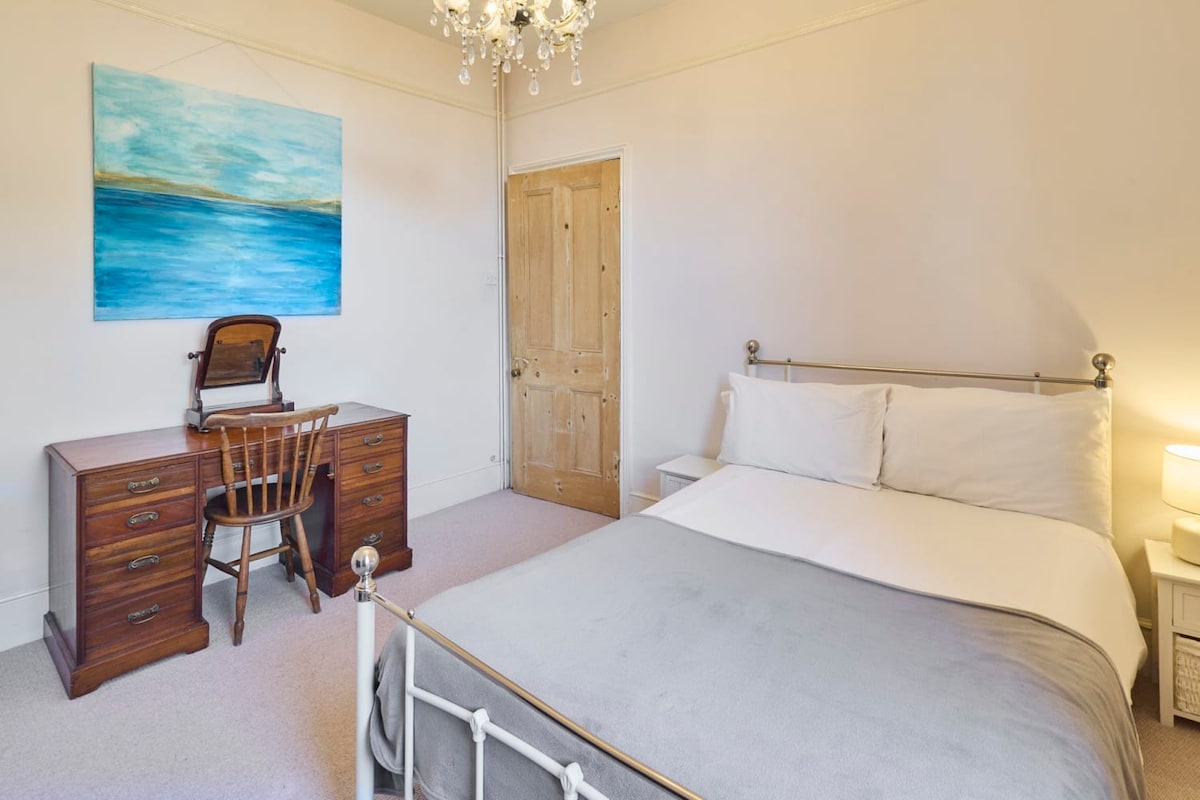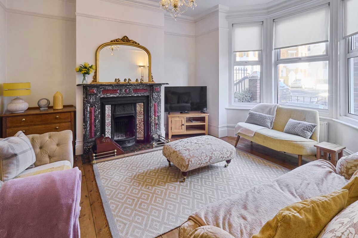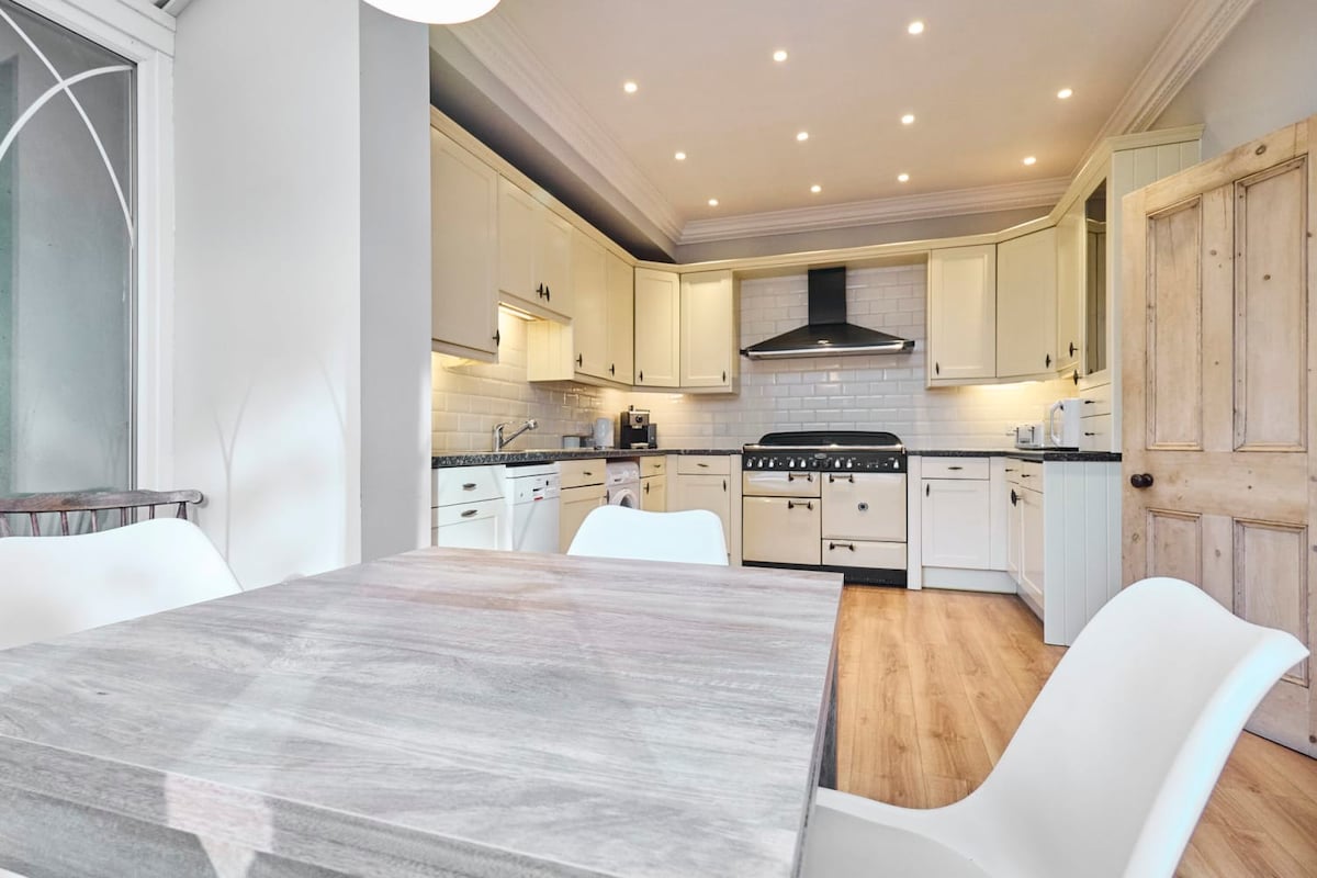 You will have full access to the full property when staying at Bellevue Road which includes a spacious living room, a large full equipped kitchen, four bedrooms, two bathrooms and a terraced garden. There is a basement which has a washing machine, fridge and cleaning products.On the ground floor, you will find the spacious living room with a cosy sofa, two matching armchairs and stunning vintage fireplace. The perfect place to unwind, you can turn on the flat screen TV and catch up on your favourite shows.