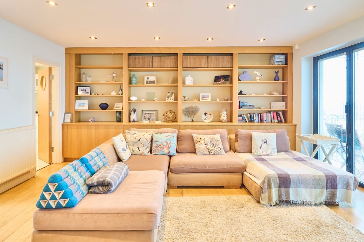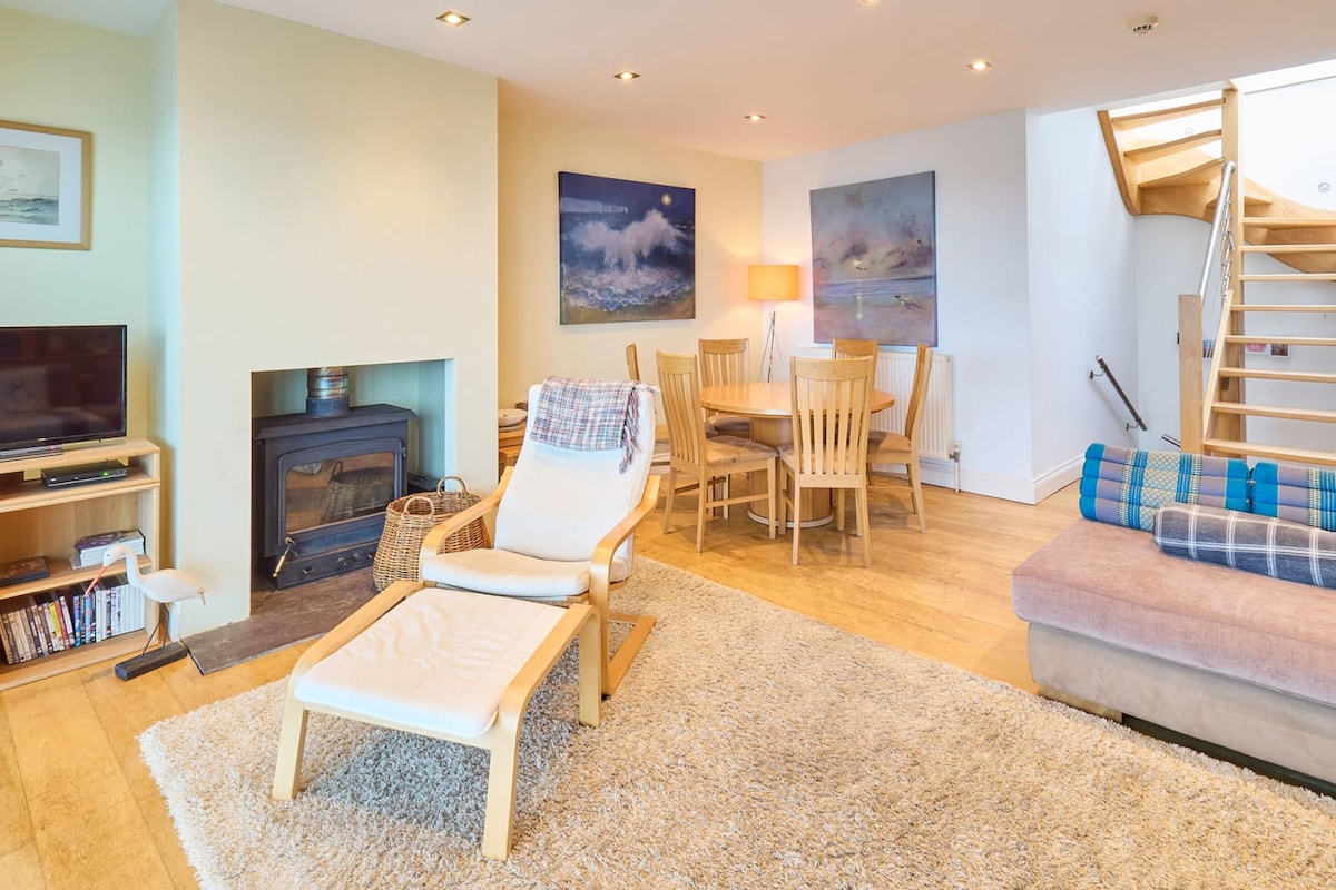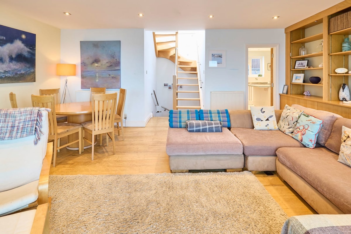 Super beautiful apartment with insanely great views from every window and very beautiful roof terrace! Breathtaking views! The house is right on the center with beautiful old houses, quaint pubs and curious shops. I especially loved the very friendly artist neighbors. My daughter and I did a workshop with him (ornaments made of colorful broken glass). The beach is right outside the door, but it's also nice to just sit on the roof terrace, balcony or living room. The beds are comfortable and rather soft, there are 2 bathrooms (each with toilet and shower) and a bathtub. The kitchen is huge and has plenty of storage space for supplies. Overall an outstanding stay and the goodbye broke my heart a bit! I wish I'd stayed there!