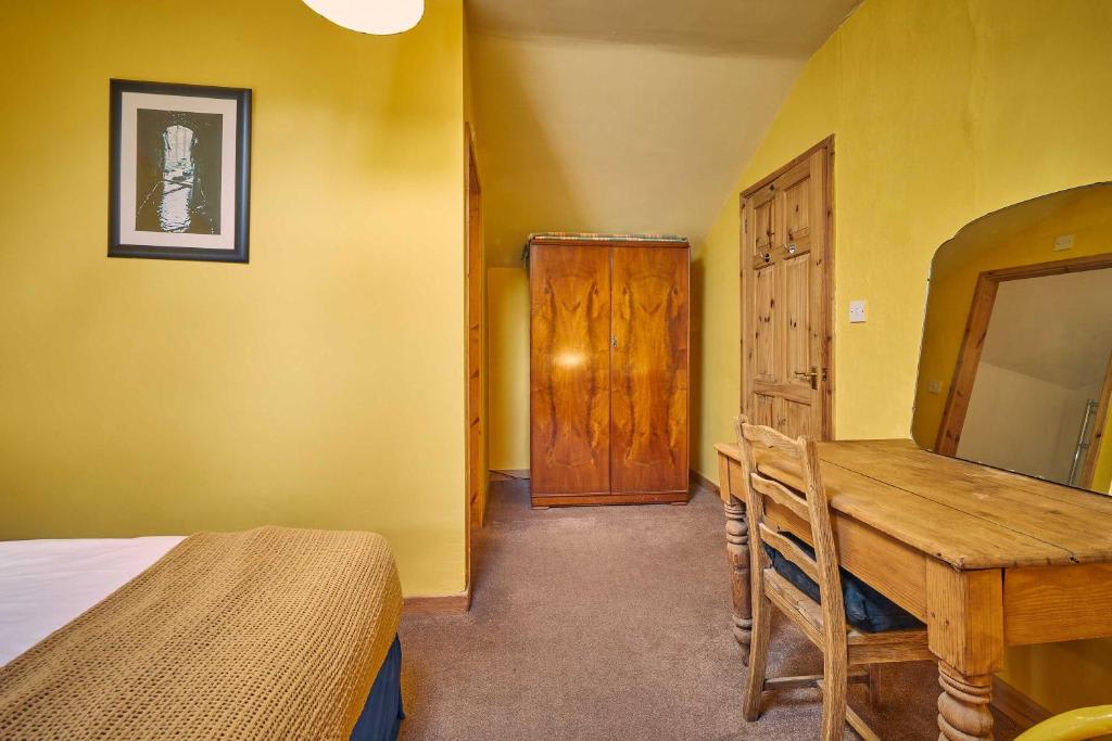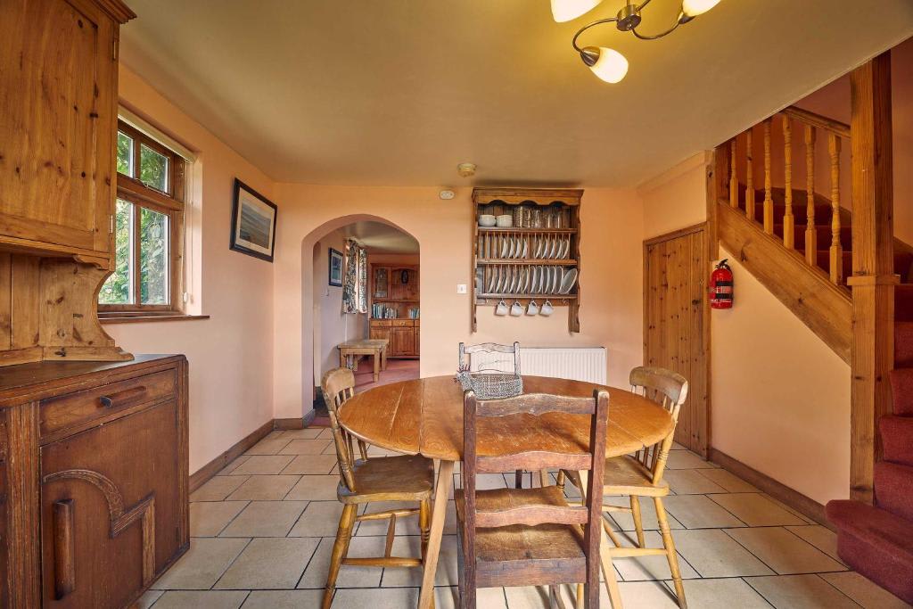 Head through the archway and you’ll find the open plan kitchen diner. With light coloured walls and mint green tiles, the kitchen has a bright and airy feel. Wooden cabinets and a Belfast sink add a country style which fits perfectly with the nature of the barn. Fully equipped for all self-catering staycations, you’ll have access to an oven, hob, toaster and kettle during your stay.